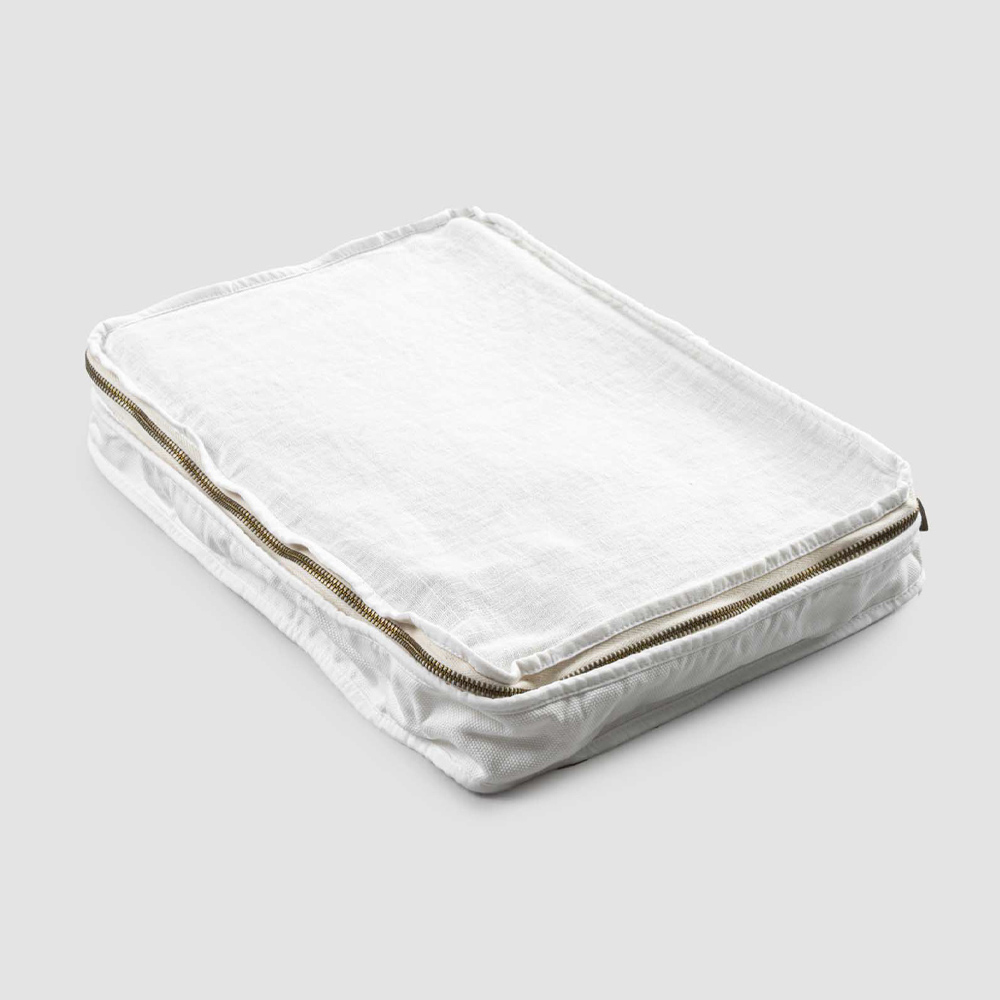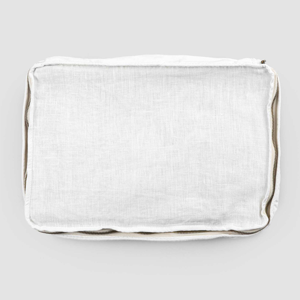 Tillverkad i Italien av högkvalitativt linne och bomull och gjord mjuk vid beröring tack vare speciella behandlingar som förbättrar dess naturliga utseende, är den kosmetiska väskan skapad med ett allergivänligt och antibakteriellt tyg, förutom användningen av naturliga och allergivänliga färgämnen som de ge glans och livlighet till den naturliga fibern.