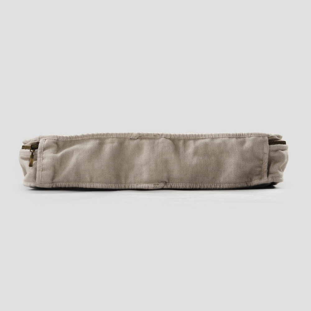 Rektangulär kosmetisk väska i linne och retro bomull eller gammalt gips med dragkedja, tillverkad i Italien.
