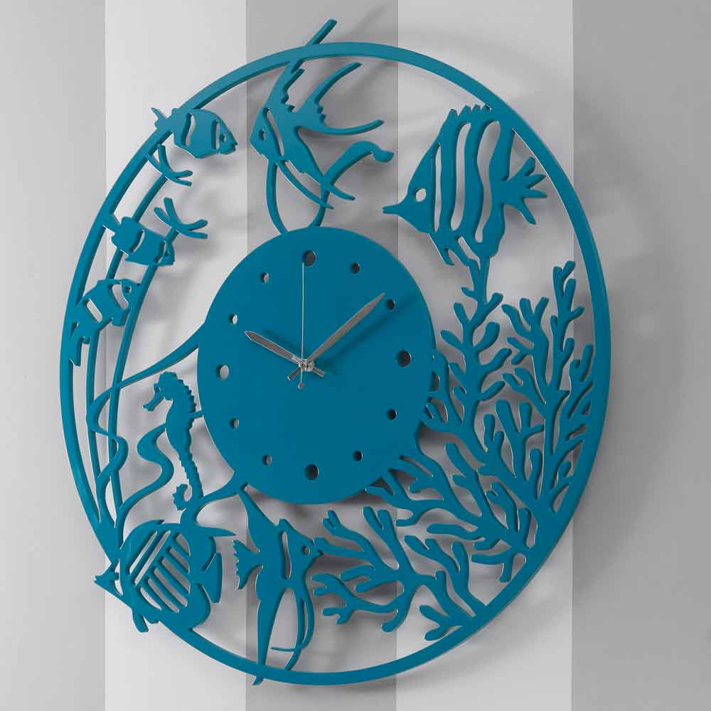 Stor väggklocka i vitt, svart, bensin eller brunt trä, modern och speciell rund design tillverkad i Italien.