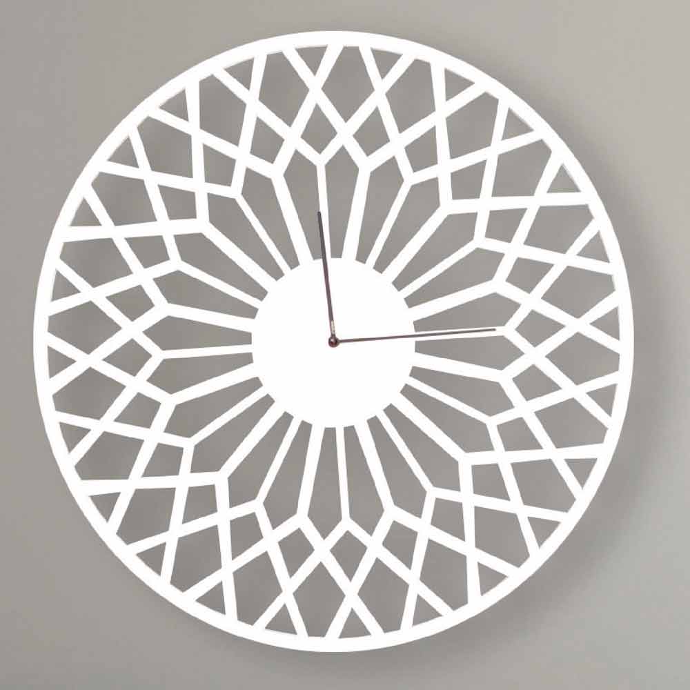 Stor rund designväggklocka i vitt, rosa eller sköldpaddeväv från Italien.