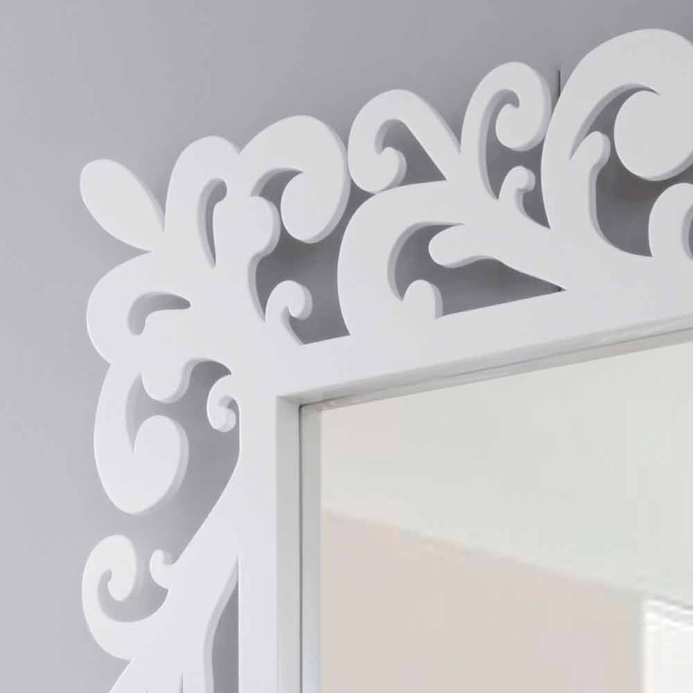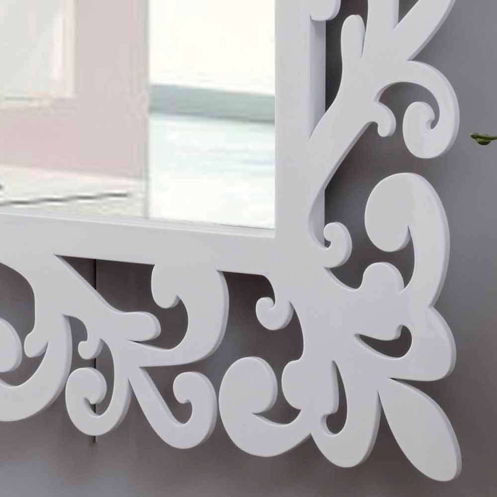 Rektangulär väggspegel lekfull eller ogenomskinlig vit, modern design med träram tillverkad i Italien.