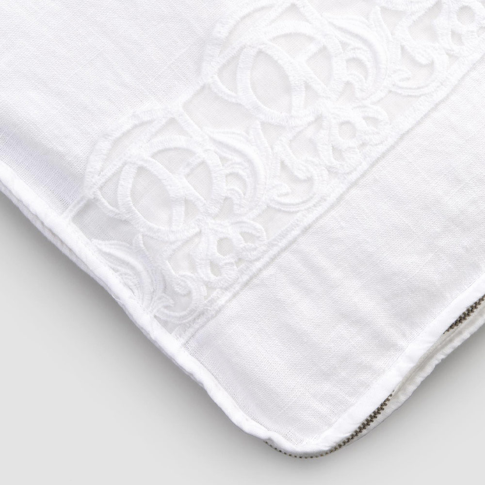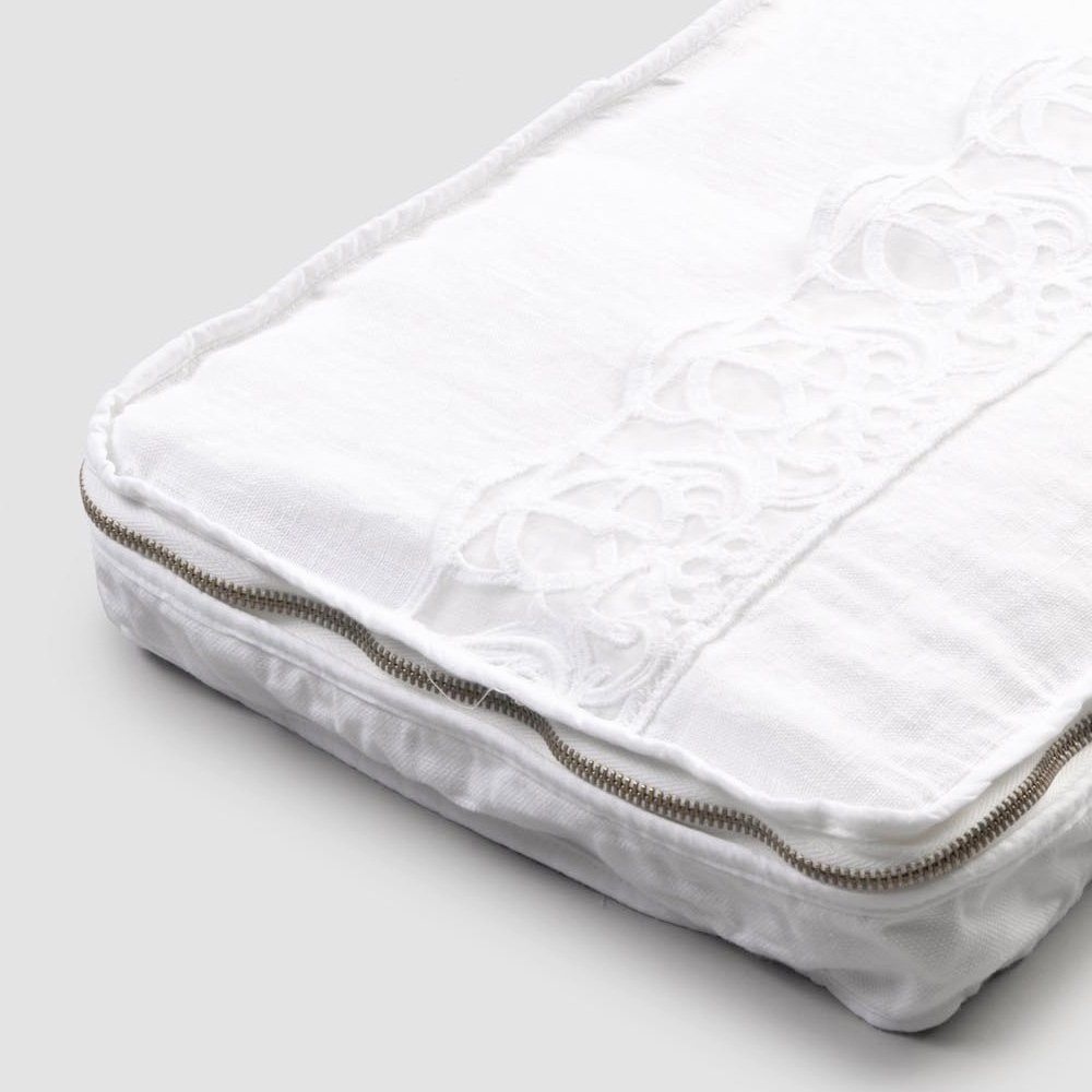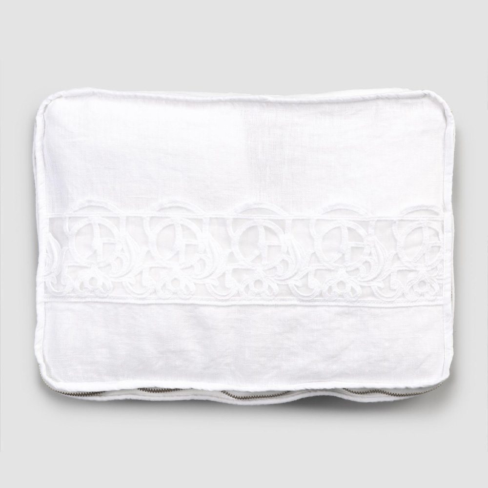 Rektangulär kosmetisk väska av linne och bomull med blixtlås och synergispetsar, tillverkad i Italien.
