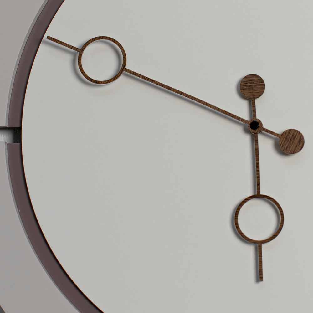 Rund väggklocka i brunt, beige och kakao lackerat trä med valnöthänder, modern design gjord i Italien.