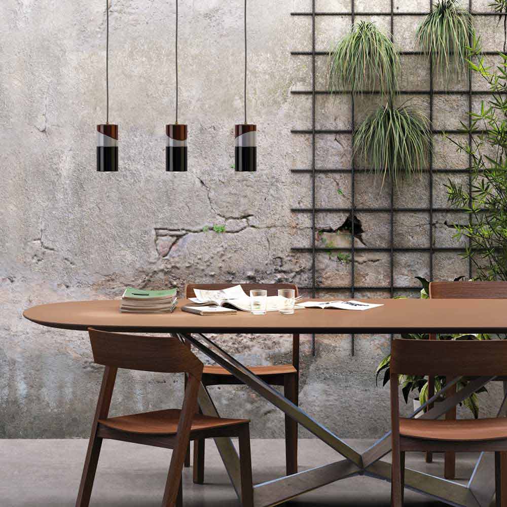 Tillverkad i Italien med högkvalitativa material: keramik i brunt, grått och svart med svartvitt tygkabel och mässingskabel.