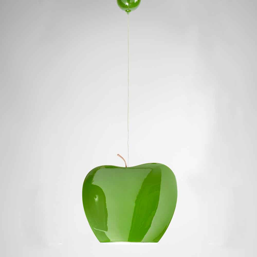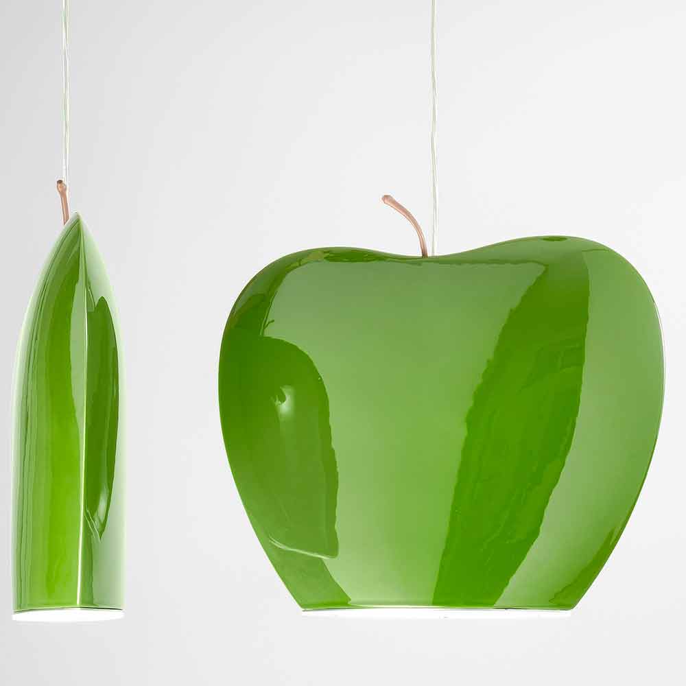 Belysning med excentrisk design: keramisk upphängning i form av ett äpple, Fruktsamling Aldo Bernardi.