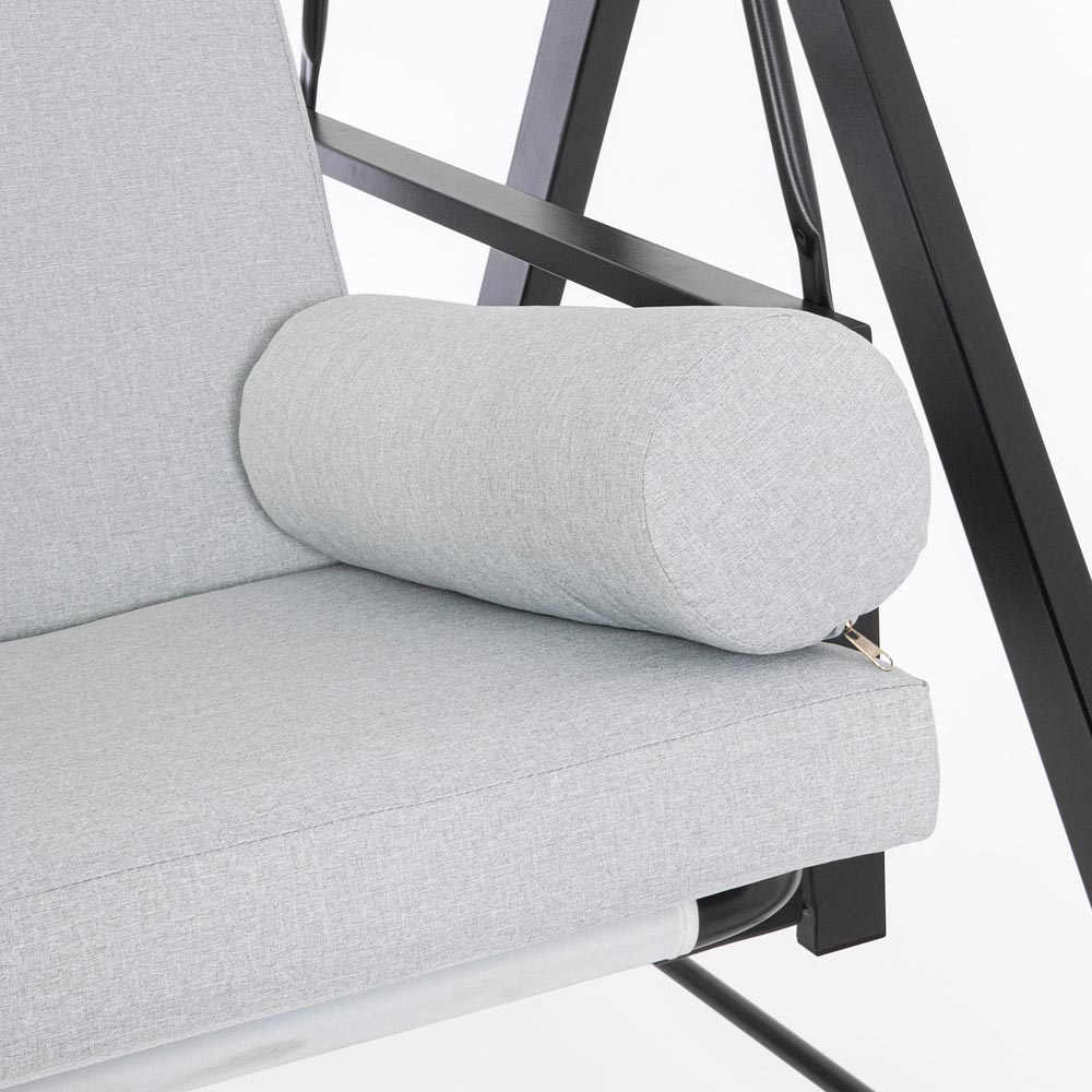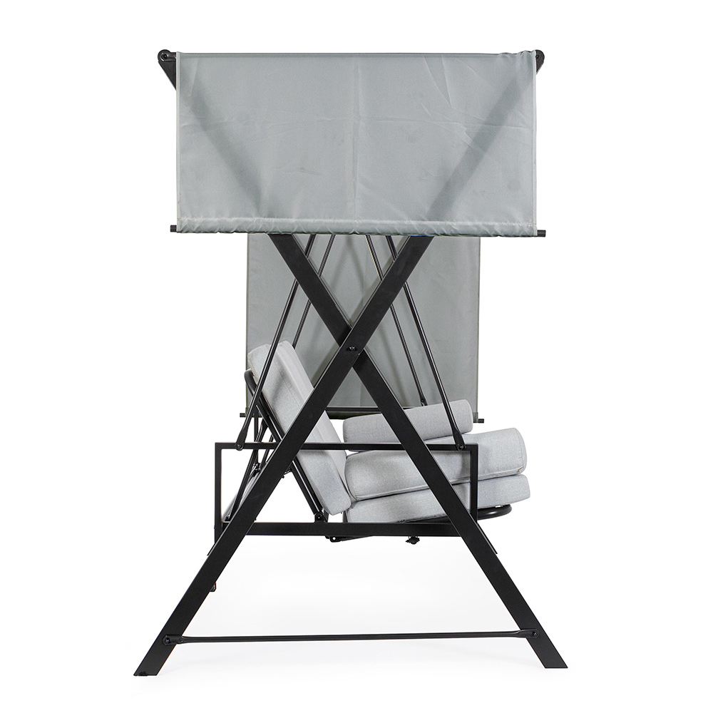 Denna trädgårdsgunga är en oas av lugn och avkoppling, designad för att berika alla utomhusutrymmen med sin eleganta och bekväma design . Den solida målade metallstrukturen ger inte bara stabilitet utan också en stark och modern estetik. De mjuka och inbjudande kuddarna lovar timmar av komfort, perfekta för att fördjupa dig i en spännande läsning eller njuta av en söt tupplur i skuggan.