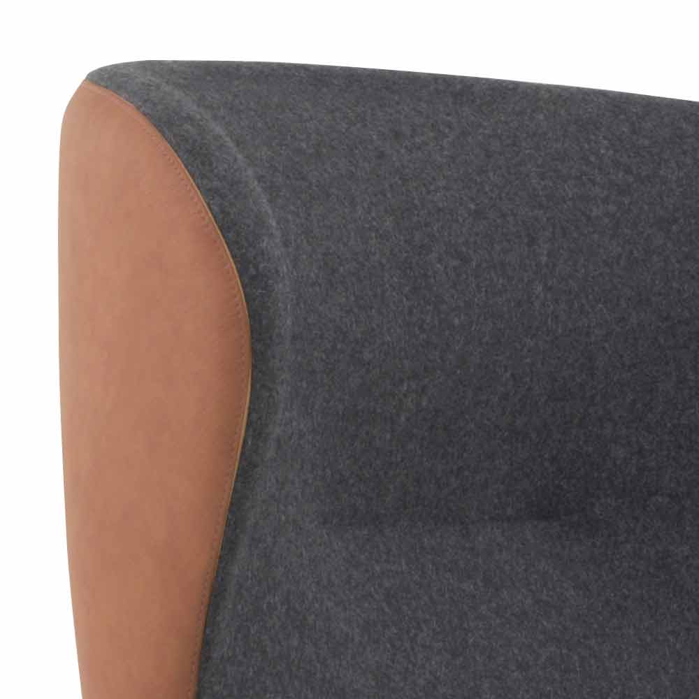 Vardagsrumsfåtölj med invändig struktur i stål gjuten i kallskummad polyuretan och täckt i