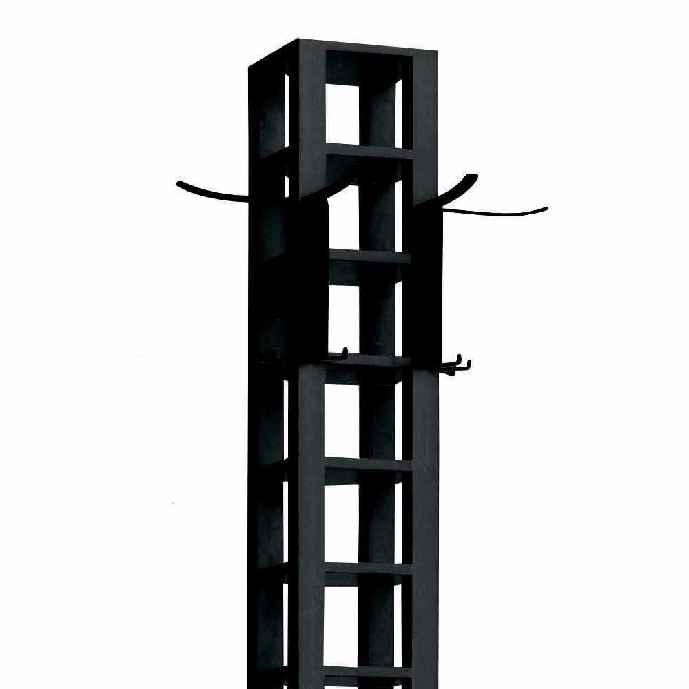 Pälsställ i svartfärgad aska med kromade detaljer tillverkade genom en 100% tillverkad i Italien-tillverkning . En idé om möbler med en exklusiv karaktär vars design understryks av kreativitet och originalitet som kan erbjuda funktionalitet och stil samtidigt. Dess starka sida representeras av de speciella linjerna och formerna som berikar personlighetens estetik och unikhet, vilket gör den idealisk att använda som en praktisk hängare men också för att berika möblerna som samtidigt visar ett riktigt dekorativt element med en modern karaktär. .