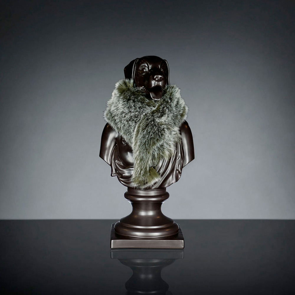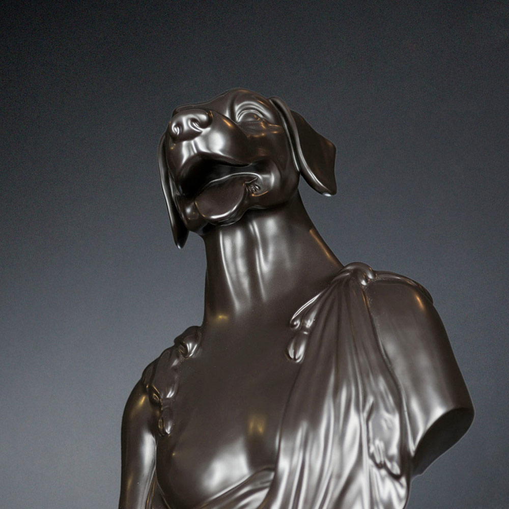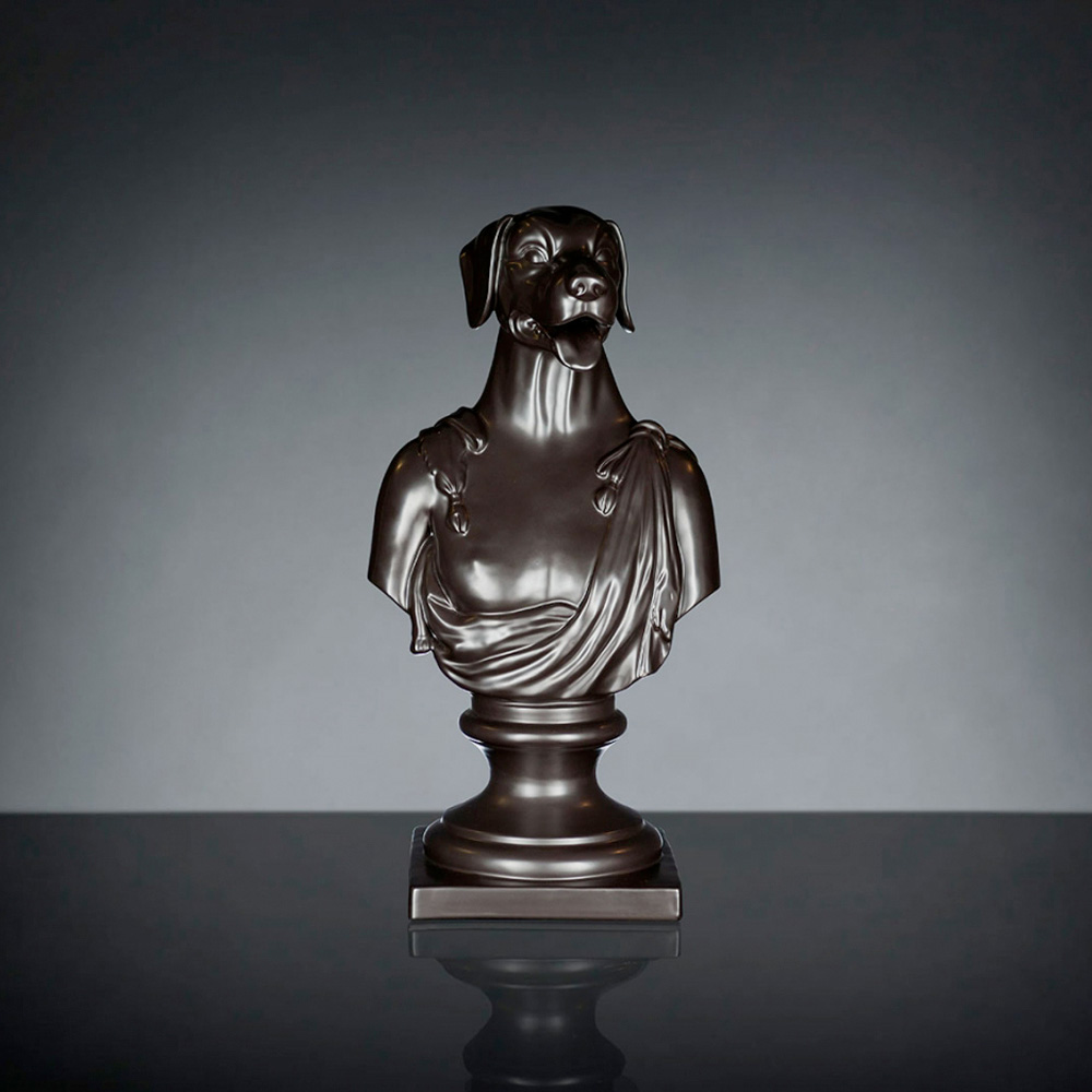 Svart hantverks keramisk skulptur 100% Made in Italy Fabas 2 Dekorativ keramikskulptur handgjord av italienska hantverkare föreställande Argos, Ulysses hund. Det är en 100% Made in Italy-produkt.
