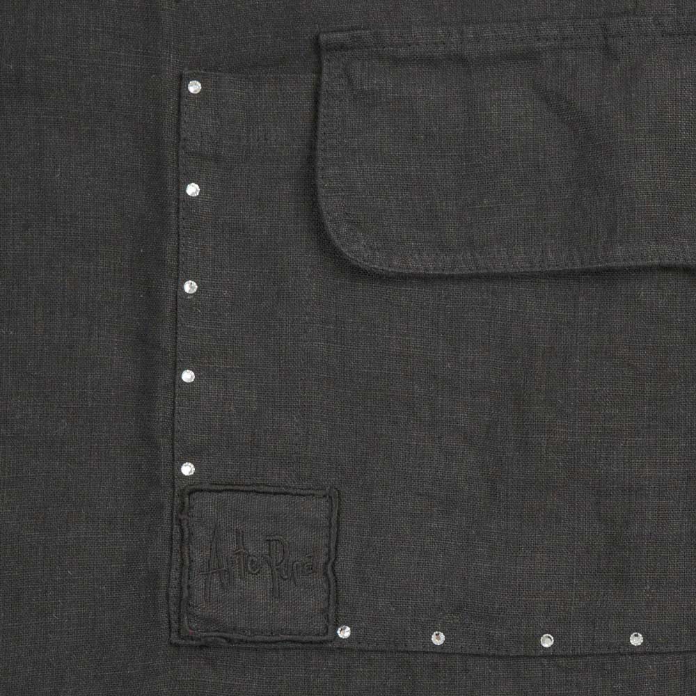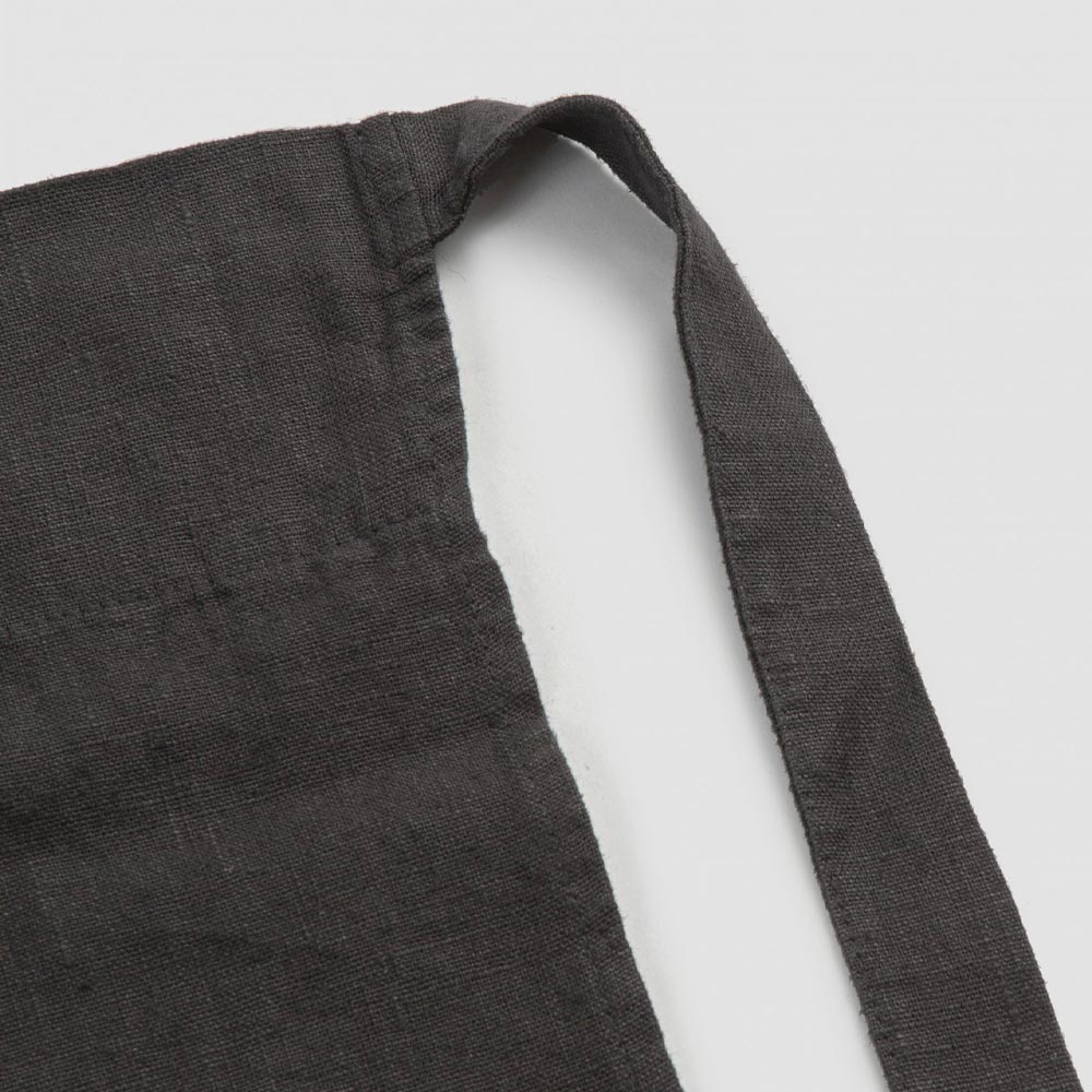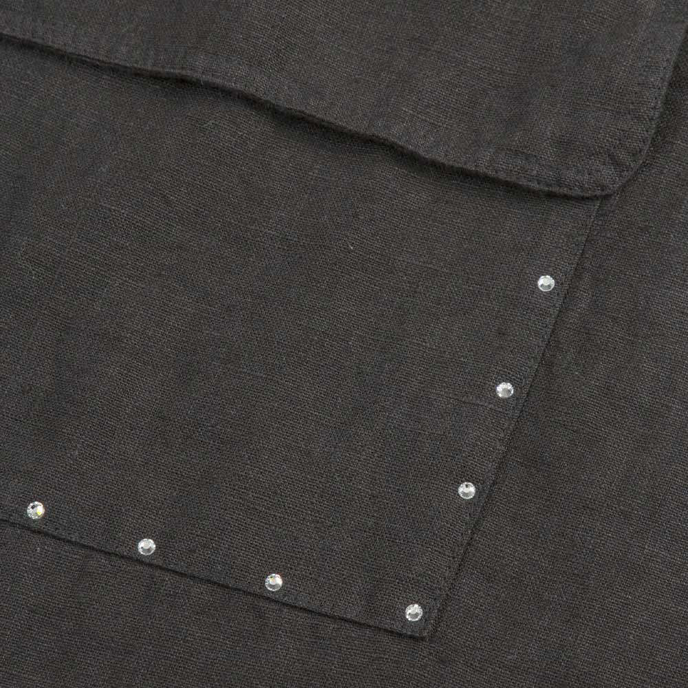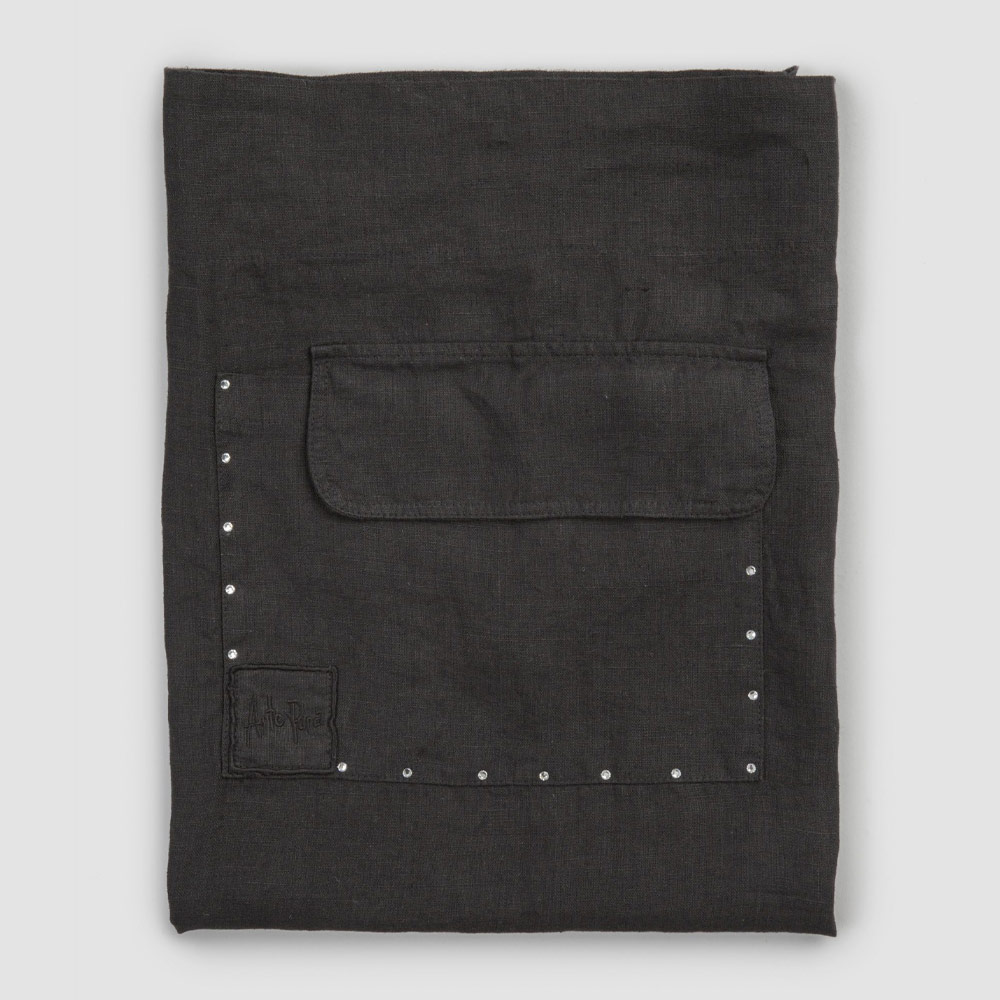 Köksförkläde i svart linne med ficka och kristaller, låg modell tillverkad i Italien.