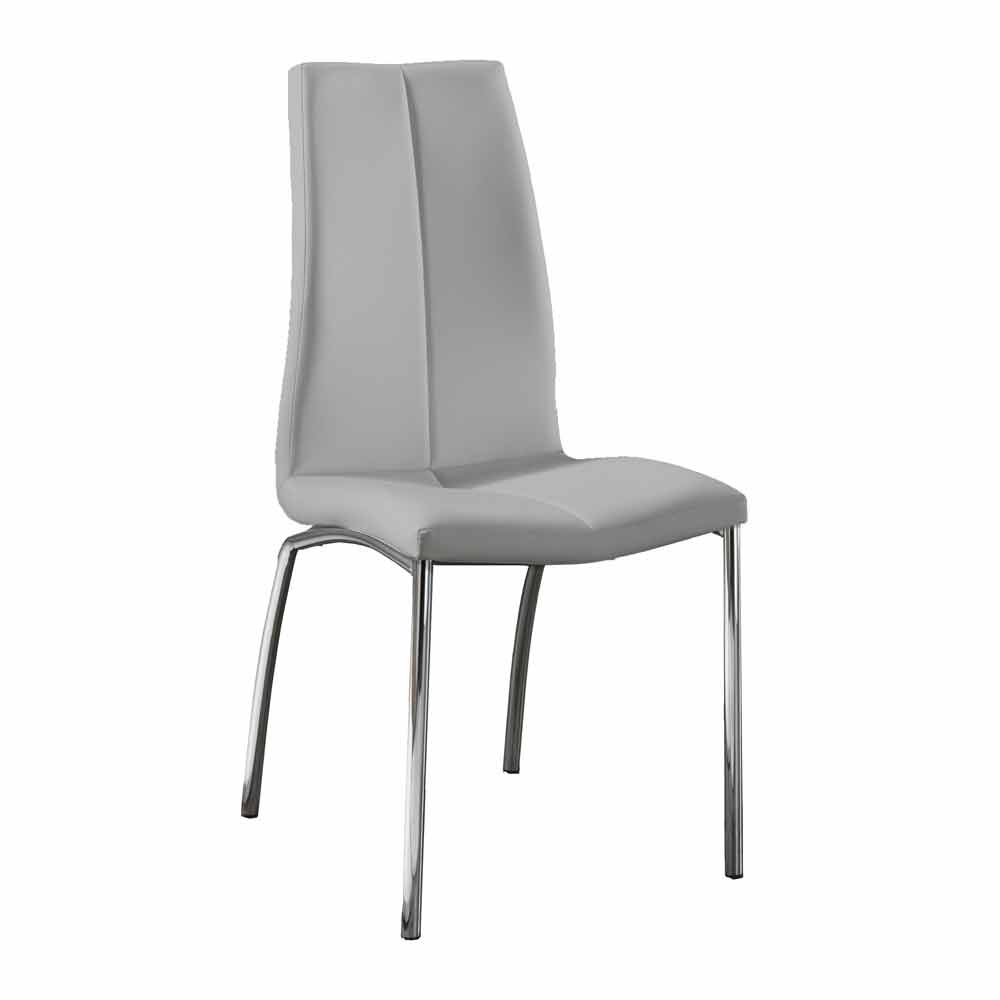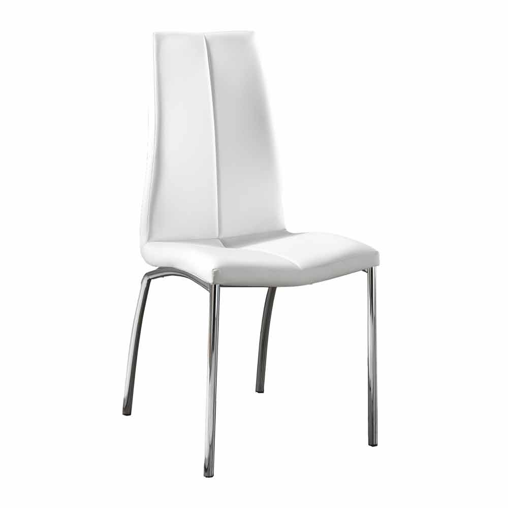 Stolar med förkromad metallkonstruktion, vadderat säte och ryggstöd täckt med konstläder. Finns i olika färger.