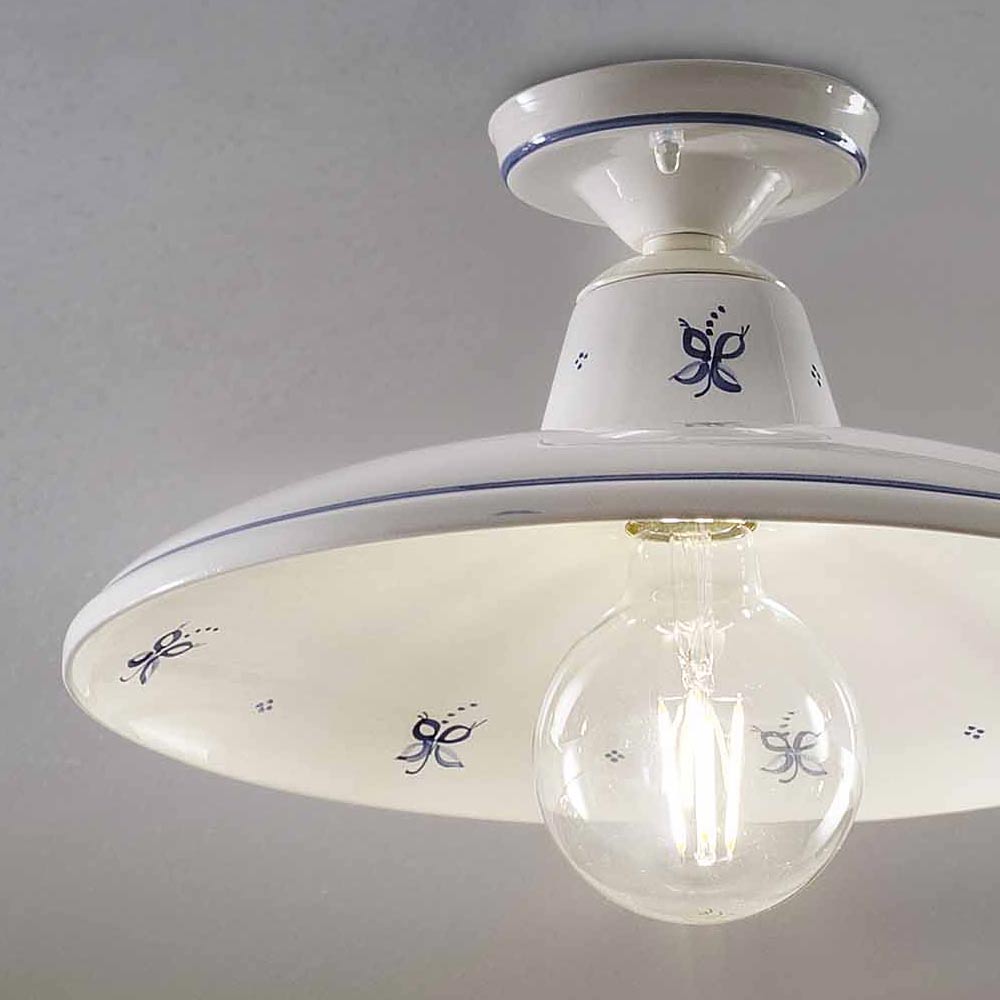 Handdekorerad taklampa i järn och keramik, tillverkad i Italien av Ferroluce.