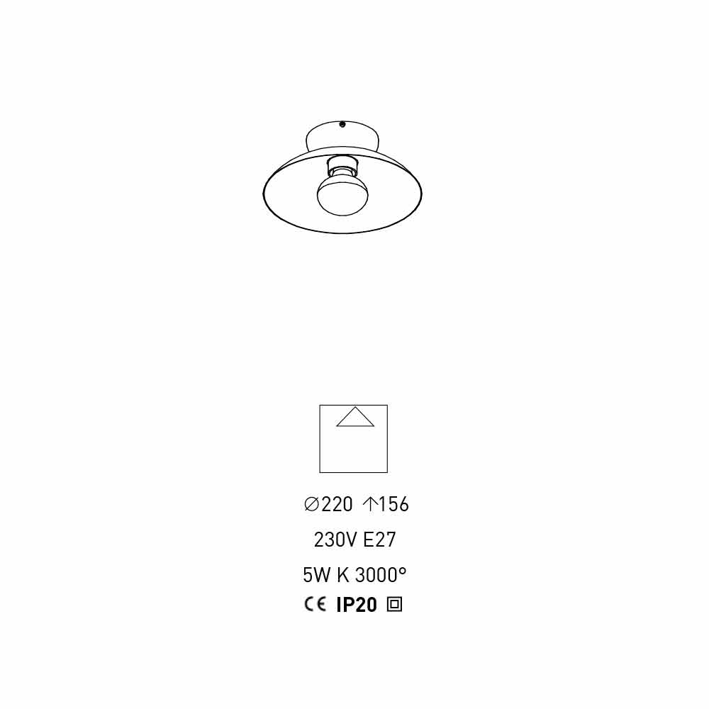 Denna plafond är tillverkad av matt svart metall berikas av den sfäriska glaskolven med guld- fullföljande detalj. Dess design kännetecknas av användningen av sfäriska former som ger lampan sinuositet och harmoni och skapar samtidigt underbara ljusspel och intima och välkomnande atmosfärer.