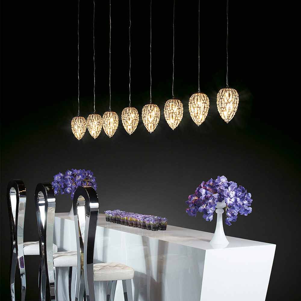 Egenheter denna lampa, som understryker dess unika, är närvaron av kristaller Asfour FASETTERAD manuellt fixerade till strukturen själv.