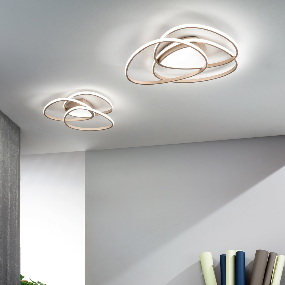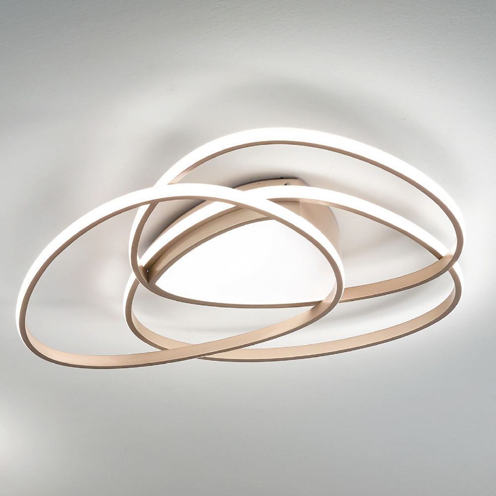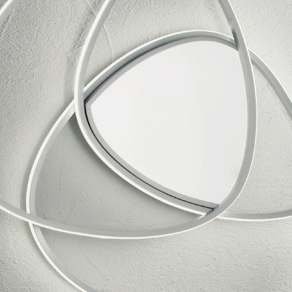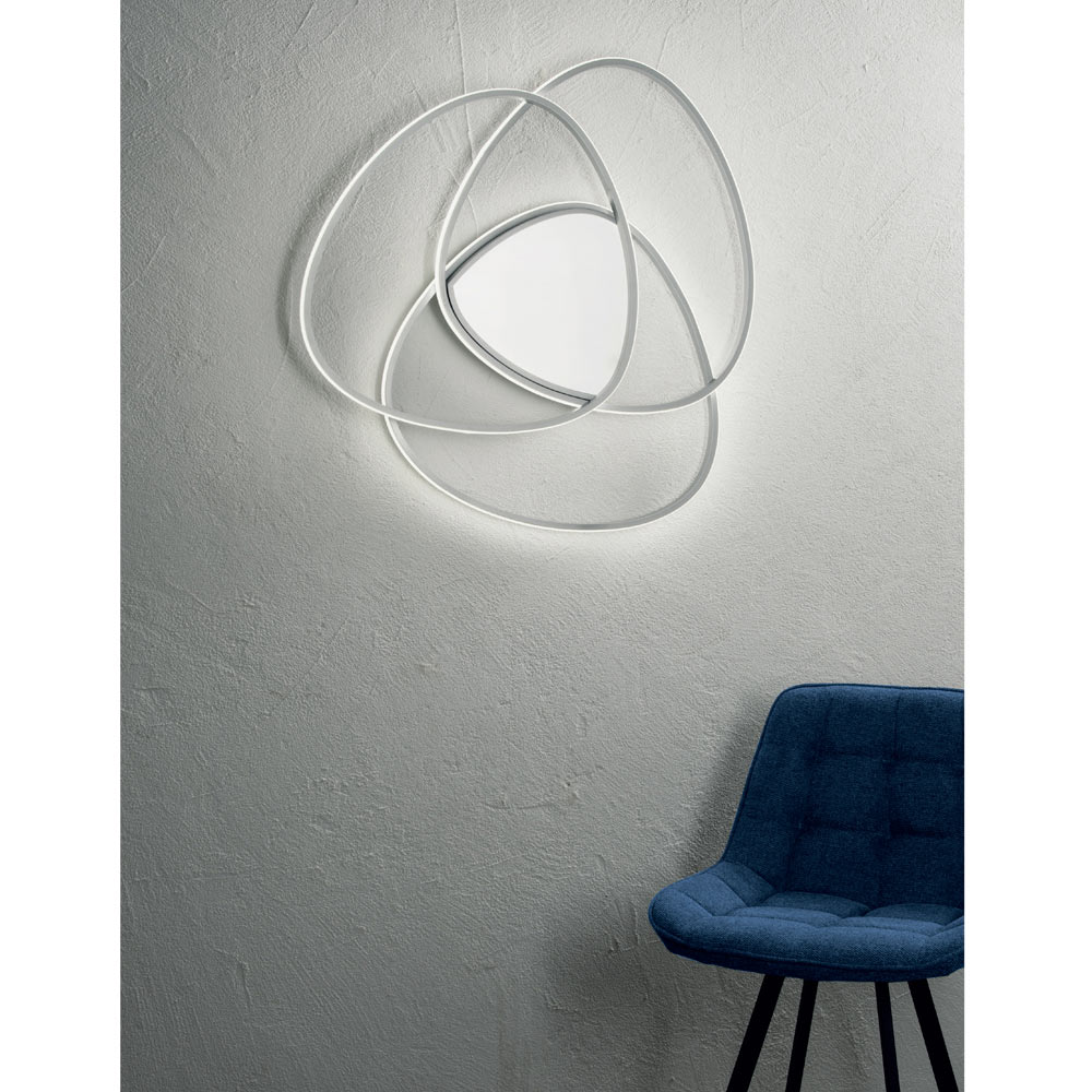 dimbar LED-ljuskälla . En design som påminner om den stiliserade bilden av en ros, en egenskap som understryker dess unika karaktär och ökar dess romantiska sida och elegans. Den ursprungliga och moderna figuren berikas genom de två föreslagna färgerna, vilket gör den extra mångsidig och därför kan den anpassas bättre till alla stilistiska sammanhang för ett