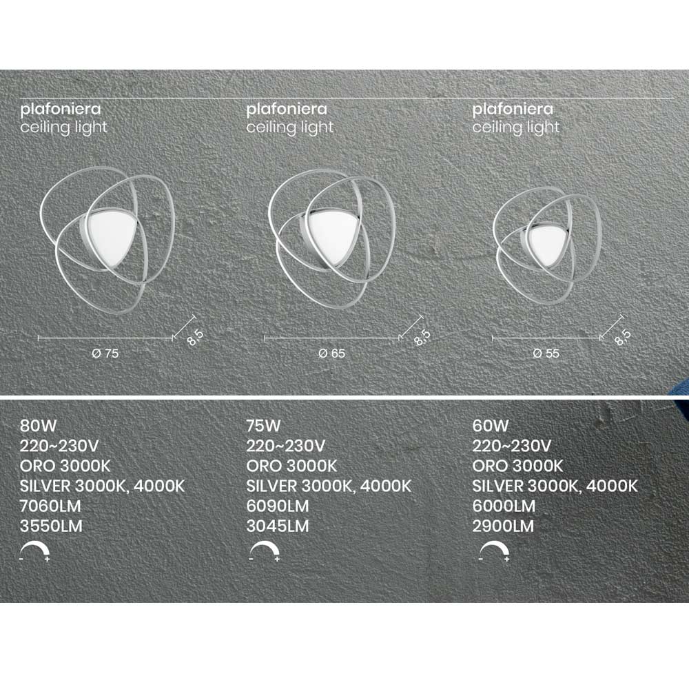 Tillgängliga storlekar:- diameter 75 x H 8,5 cm (LED 80W 220-230V 3000K 7060LM);