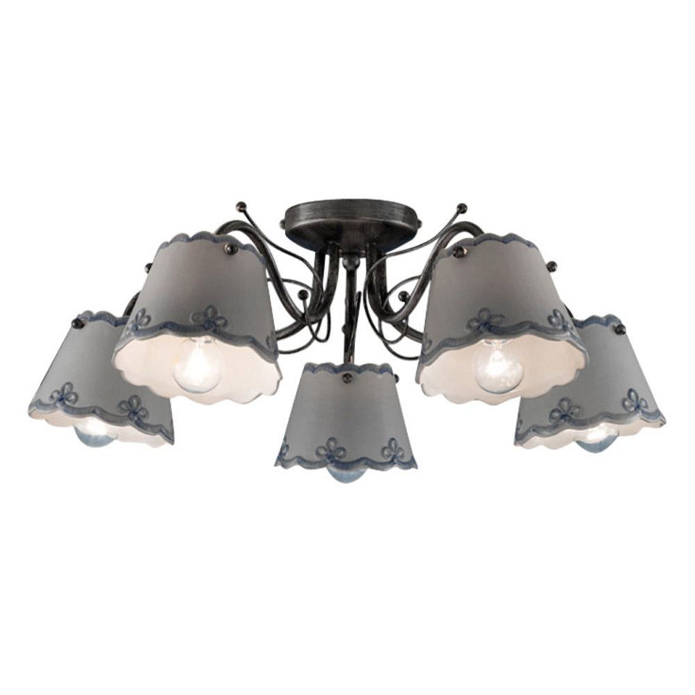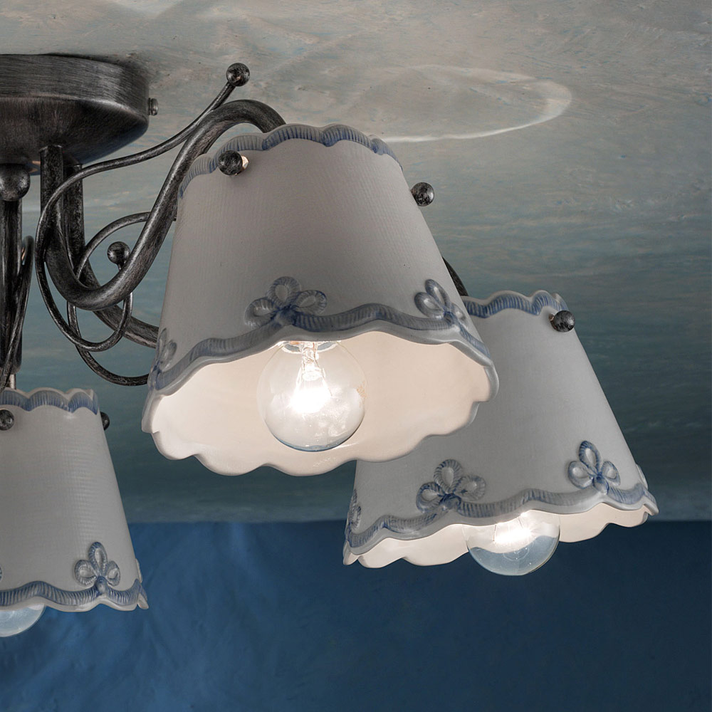 Taklampa 3 eller 5 lampor tillverkade i metall och keramik med broderieffekt, tillverkad i Italien av Ferroluce.