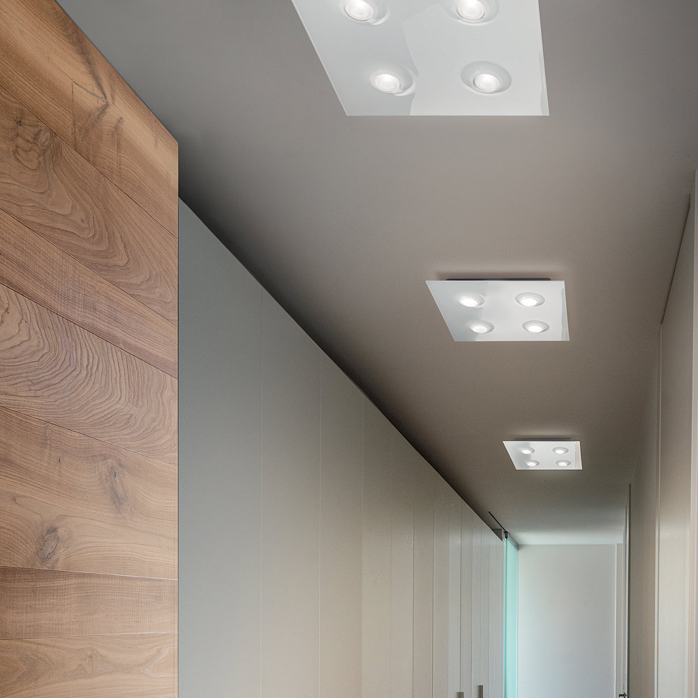 Taklampa med plan glasplatta med nedsänkbar design Tillverkad i Italien - Kora