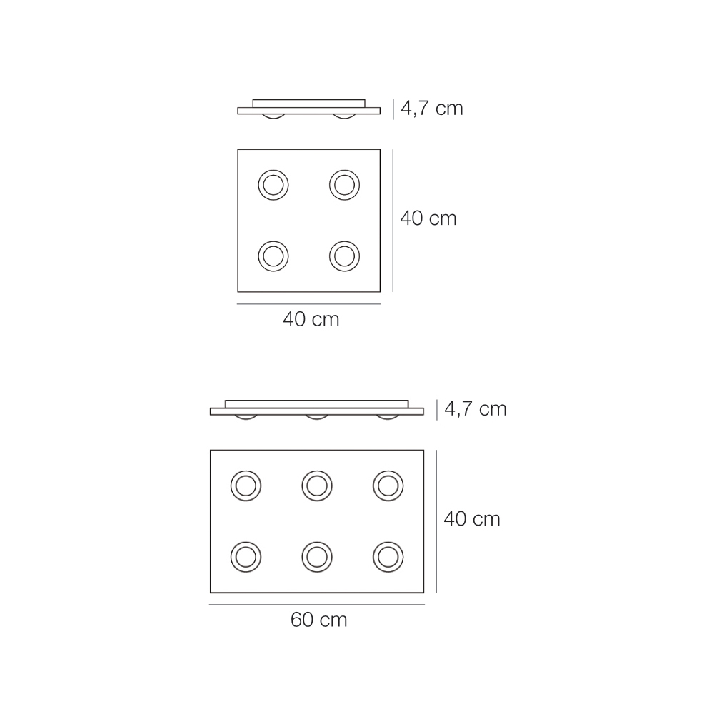 • längd 40 cm x djup 4,7 cm x höjd 40 cm - 4 lampor - dimbara