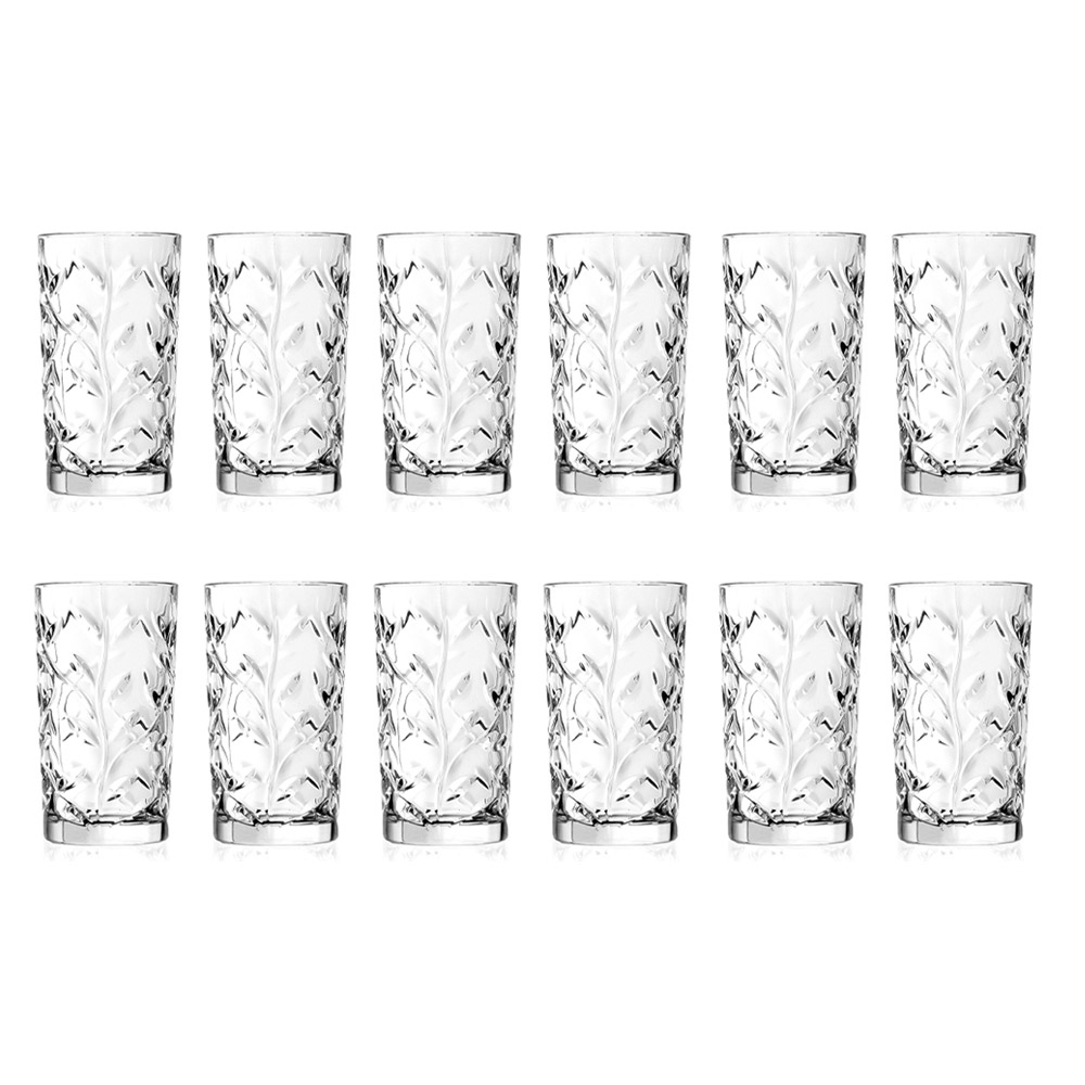 Höga glasögon i ekokristall med bladdekoration, 12 stycken tillverkade i Italien.