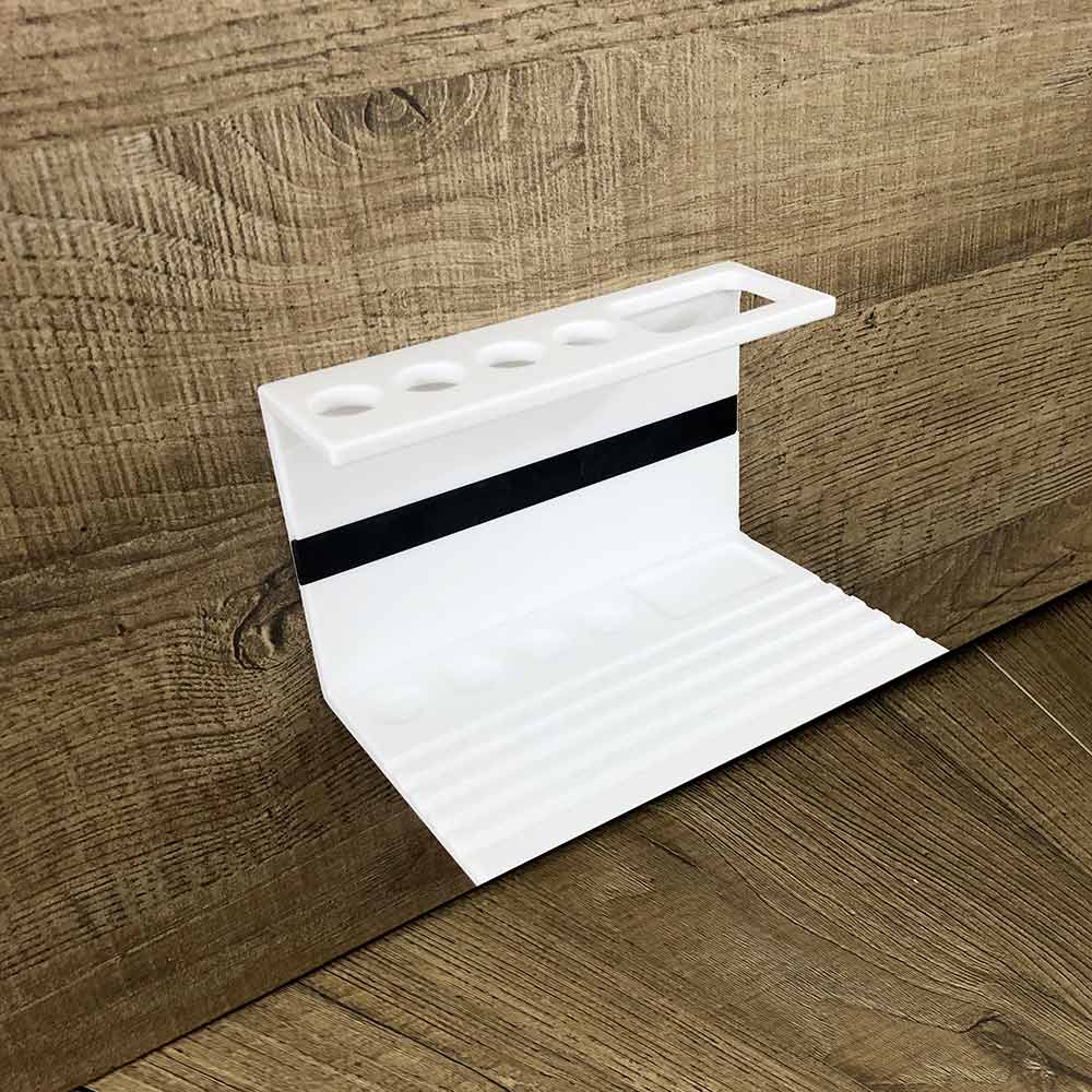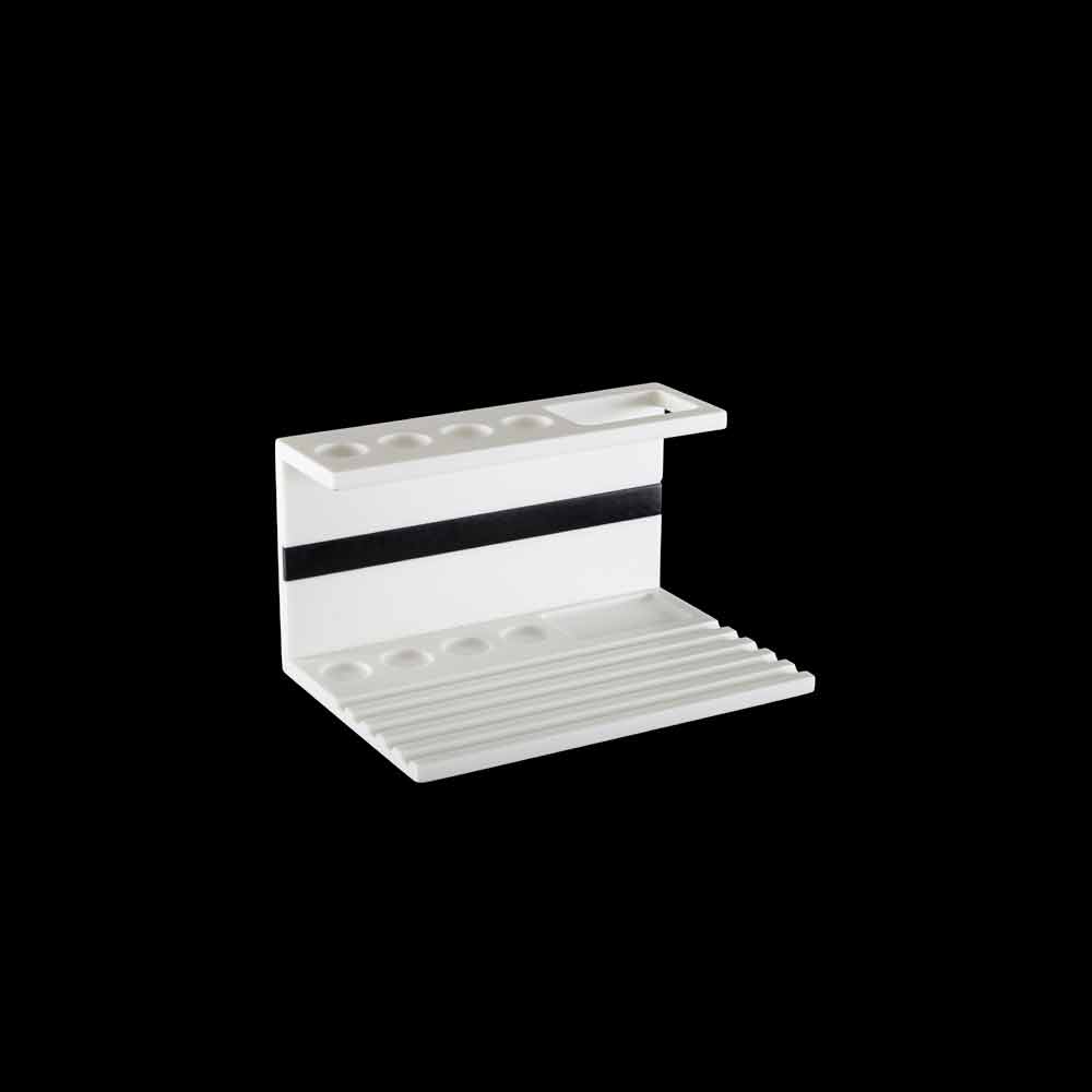 Tandborstehållare för badrummet i vit eller vit corian med svart insats av hög kvalitet tillverkad i Italien.