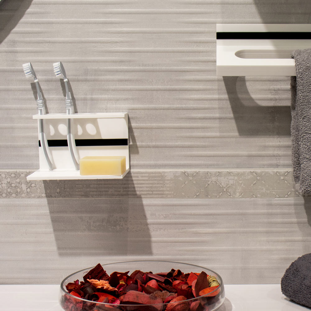 Välj denna tandborstehållare , tandkräm och tvål 6 mm tjock som badrumstillbehör för en modern och lyxig atmosfär helt gjord av Corian, ett hygieniskt material med väsentliga linjer.
