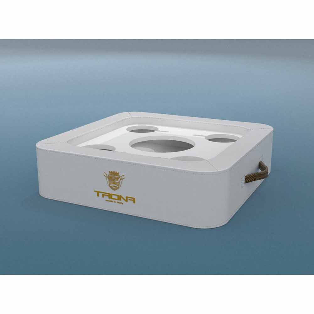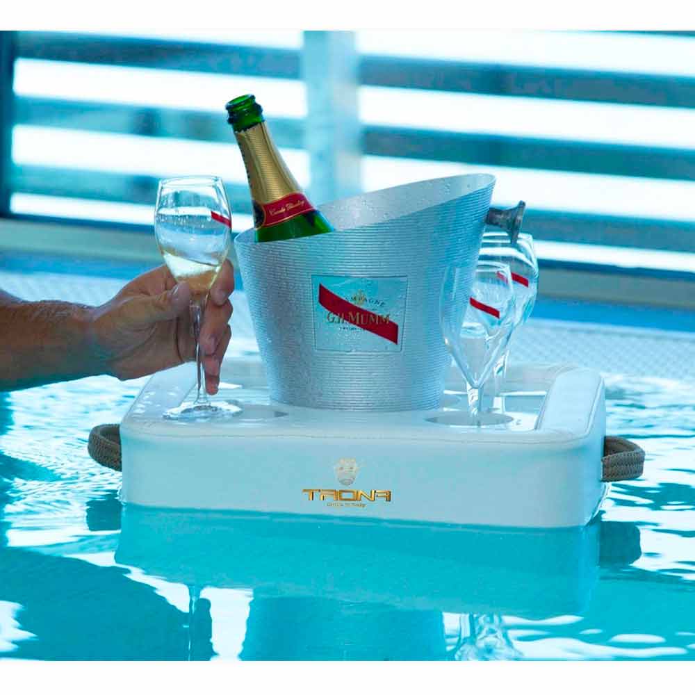 Den speciella platta perforerade plexiglas hävdar Trona flaska, ishink och glas på ett säkert sätt, utan risk för kantring. Trona har en central fack kombinerat portaghiaccio / flaskhållare och 4 hål för att få vin glasögon eller cocktail.