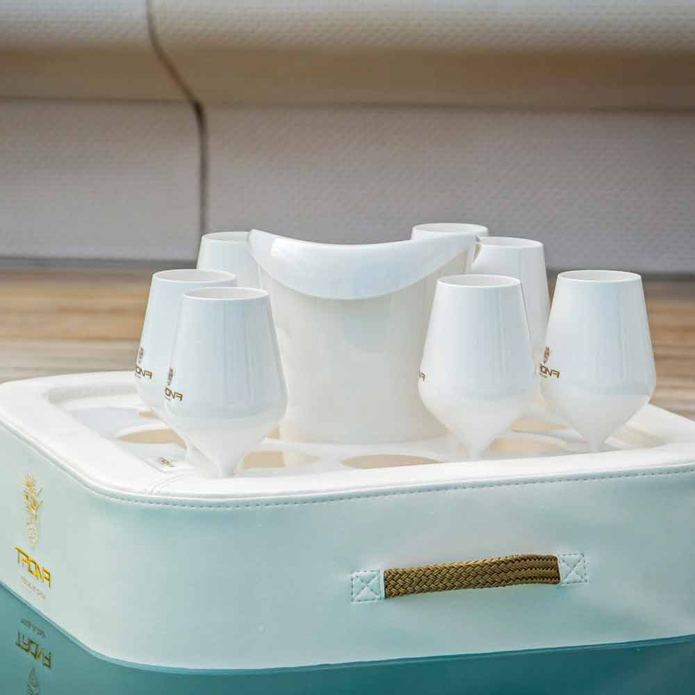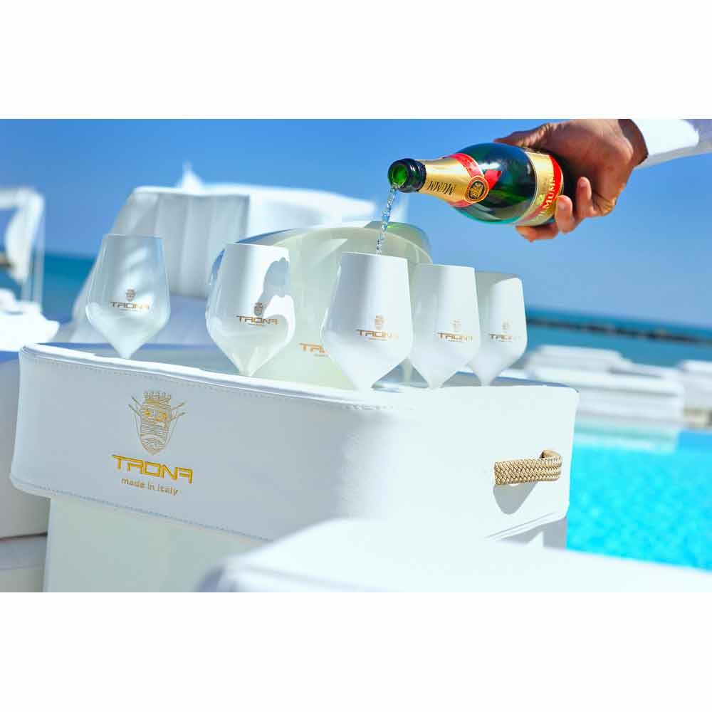 Trona är komplett med en ishink korg och en uppsättning av 8 glas av polykarbonat.