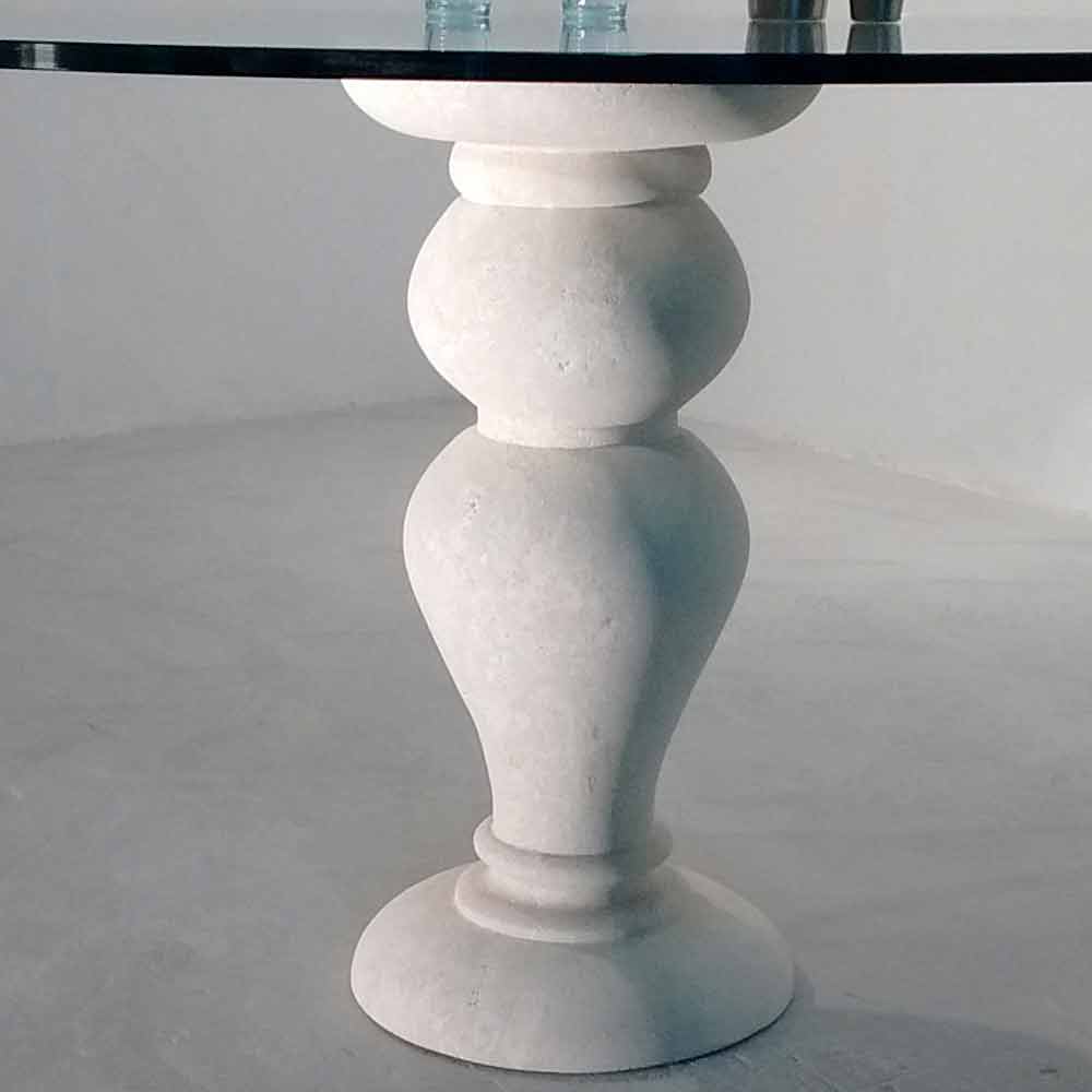 Tabell klassiska runda dining Tillverkad i Italien med central bas i Vicenza natursten, skulpterad manuellt från det fasta blocket och med glas float från 15 mm tjocka, fixerade till basen av ett stål fläns.