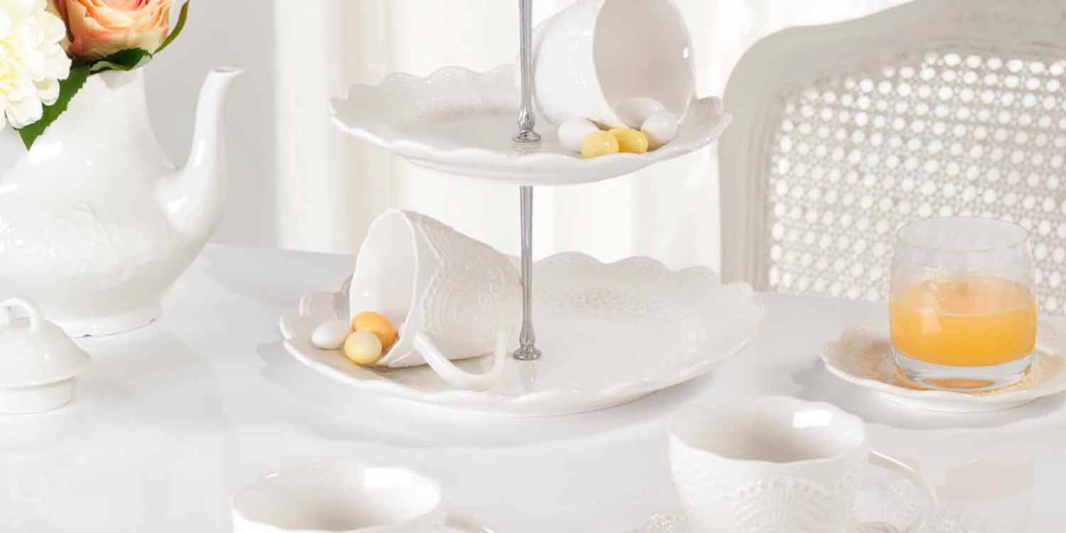 - Den dubbla bränningen vid 1280 ° av den värdefulla keramiska blandningen ger porslin maximal styrka och en speciell glans av den genomskinliga vita glasyren.