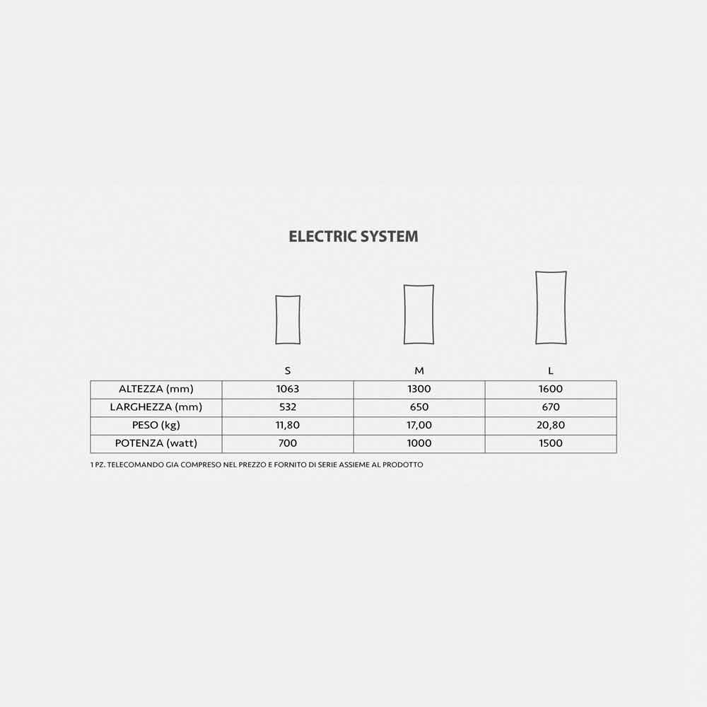 Denna produkt är utrustad med ett värmesystem som låter dig värma miljön främst genom strålning, detta gör att du direkt kan värma de element som finns i rummet som i sin tur återinför sin värme till miljön. Denna procedur gör det möjligt att ha en behaglig omgivningstemperatur med en lufttemperatur som är mycket lägre än traditionella system, och en grad mindre av lufttemperaturen motsvarar en besparing på minst 7 % av energiförbrukningen.