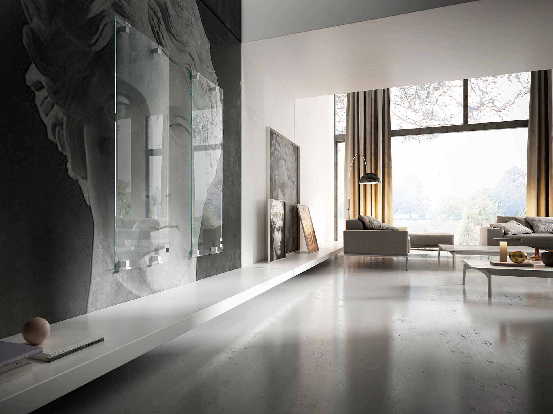 strålningspaneler i glas till elektrisk och infraröd strålningseffekt. Den utgör den höga estetiska inverkan lösning för att säkerställa en perfekt union mellan effektivitet och elegans. Det är en