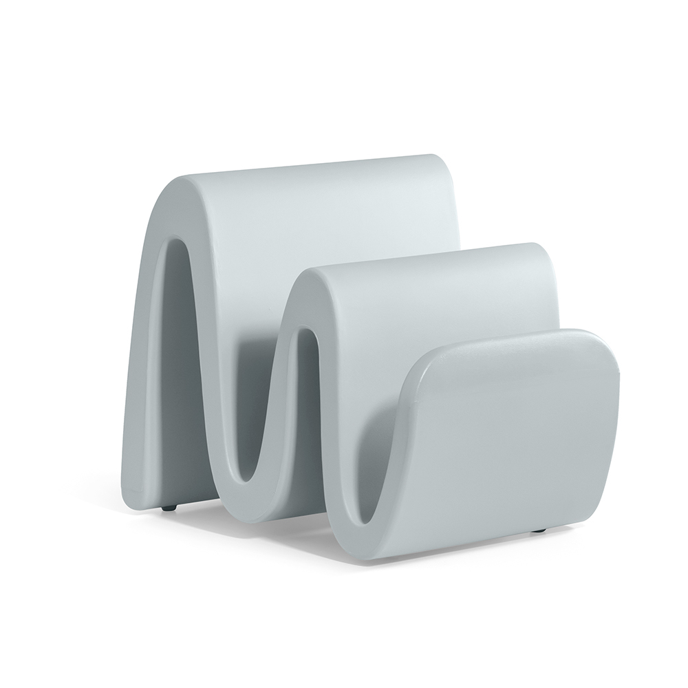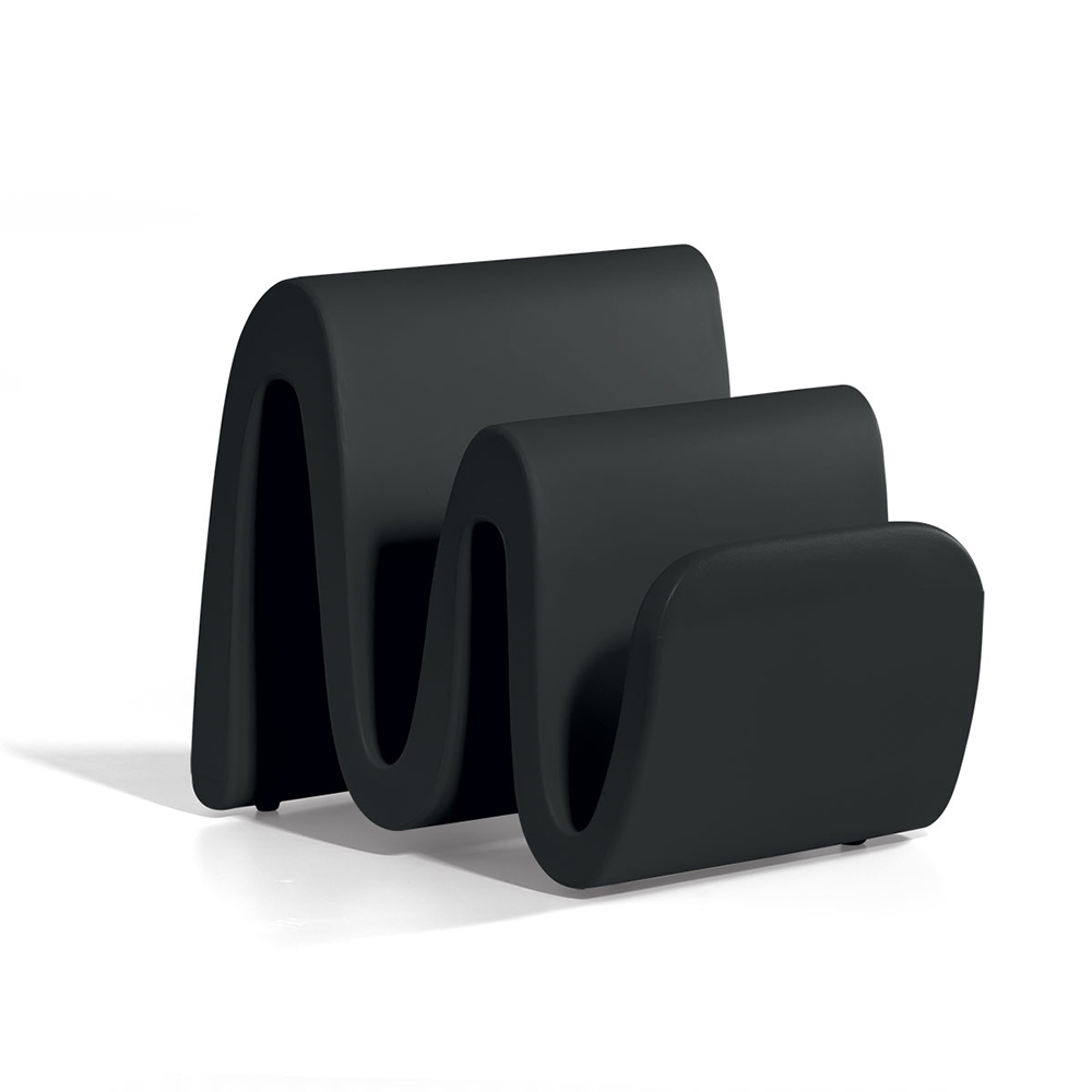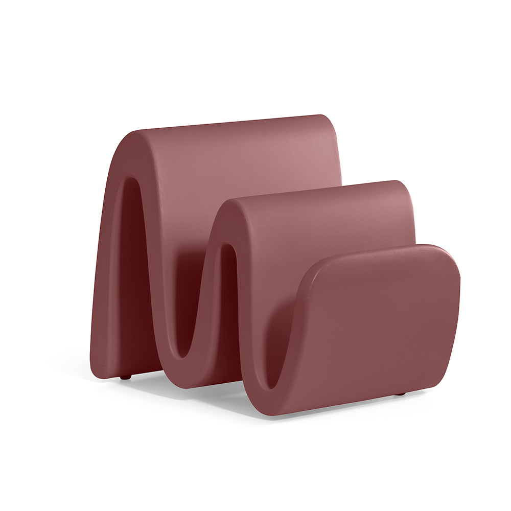 Detta tidningsställ helt tillverkat i Italien i färgad polyeten kännetecknas av en raffinerad design och en speciell form som påminner om en liten våg. Detta tidningsställ är extremt funktionellt och är ett inredningstillbehör som lämpar sig för alla miljöer och inomhusutrymmen som kan fånga uppmärksamhet på grund av sin minimala men moderna och fängslande stil.
