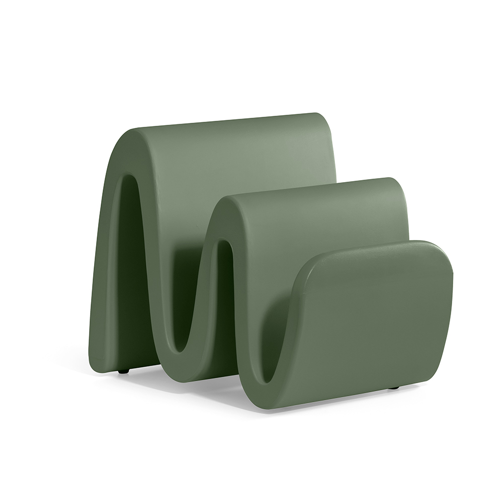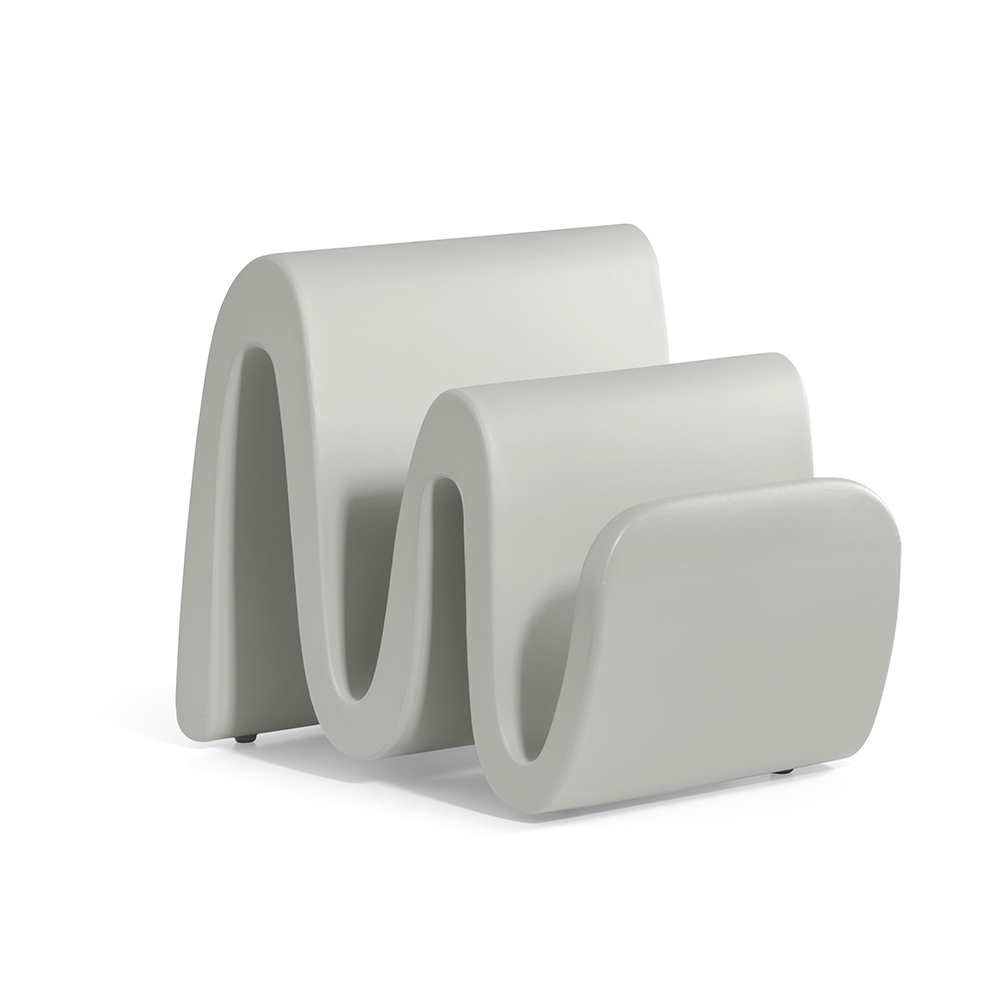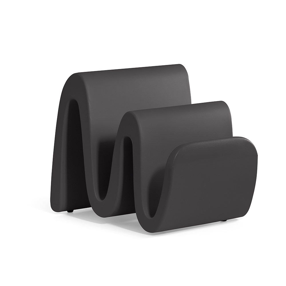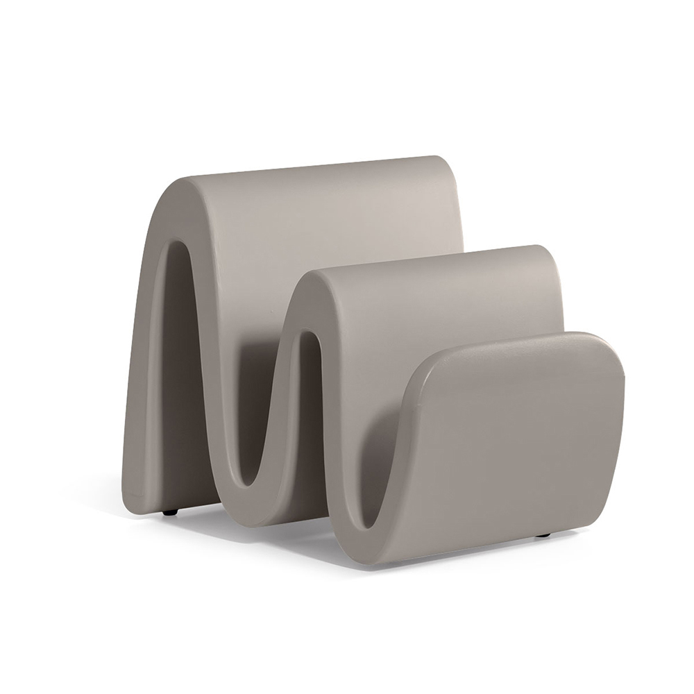 Detta tidningsställ helt tillverkat i Italien i färgad polyeten kännetecknas av en raffinerad design och en speciell form som påminner om en liten våg. Detta tidningsställ är extremt funktionellt och är ett inredningstillbehör som lämpar sig för alla miljöer och inomhusutrymmen som kan fånga uppmärksamhet på grund av sin minimala men moderna och fängslande stil.