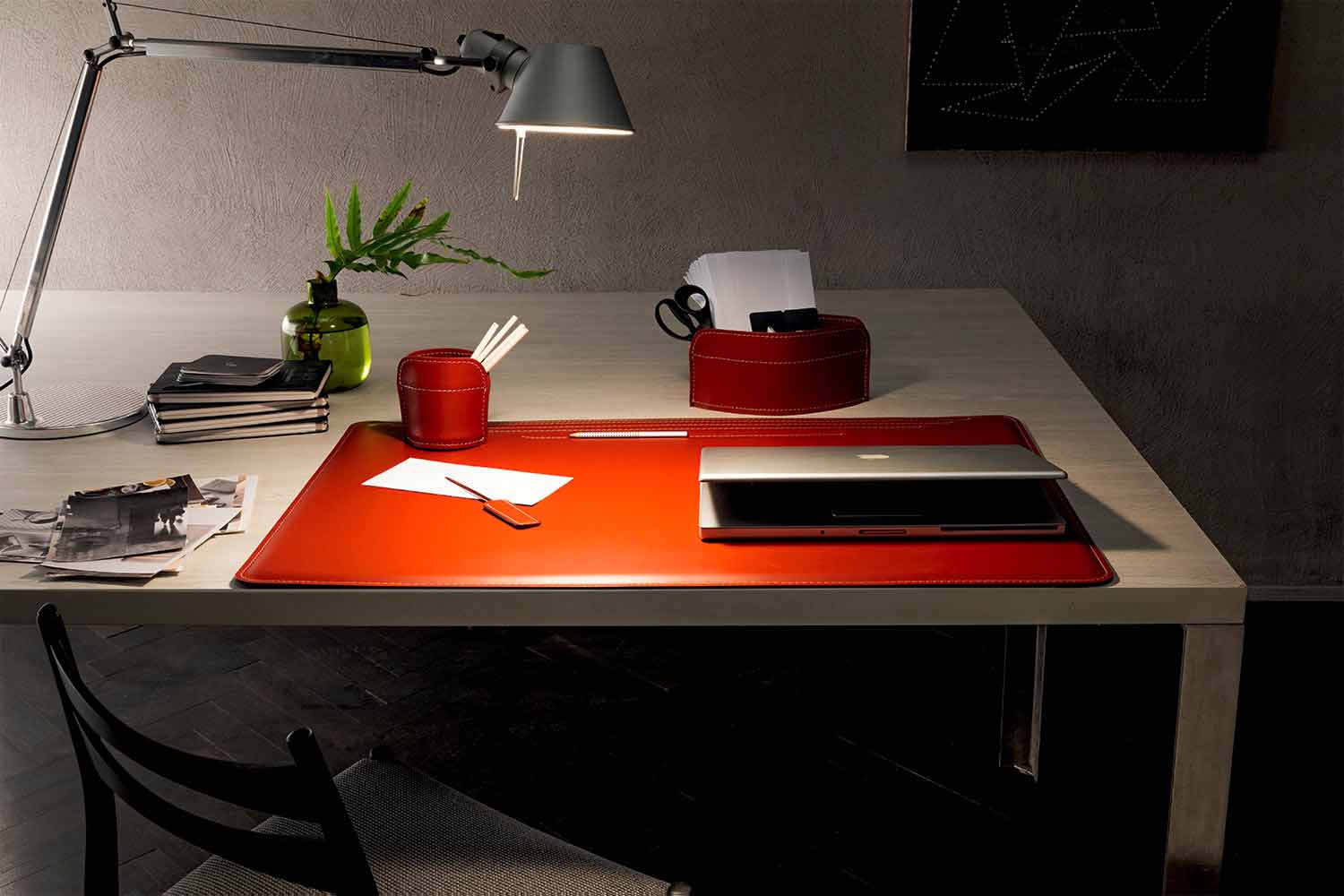 Skrivbordstillbehör i regenererat läder bestående av 4 stycken, tillverkade i Italien Ebe