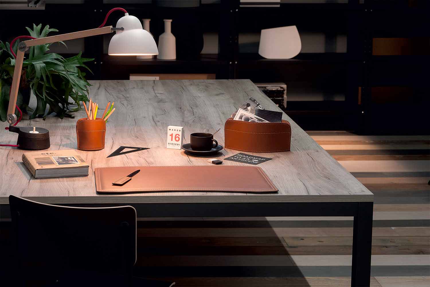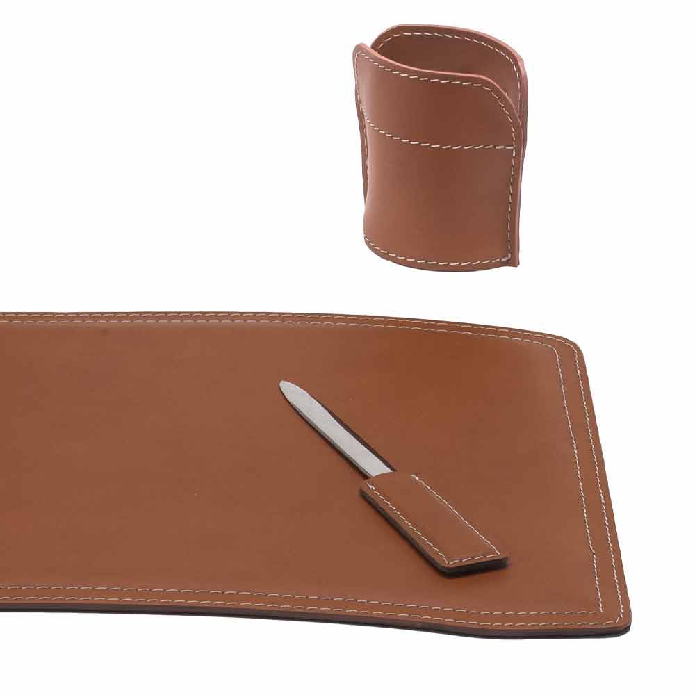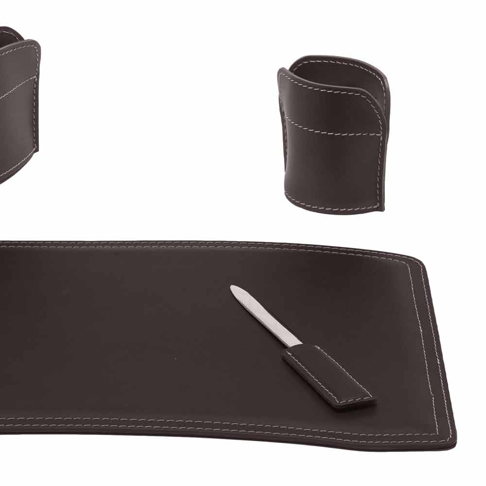Skrivbordstillbehör i designerbundet läder, set bestående av 4 stycken, Made in Italy Brando