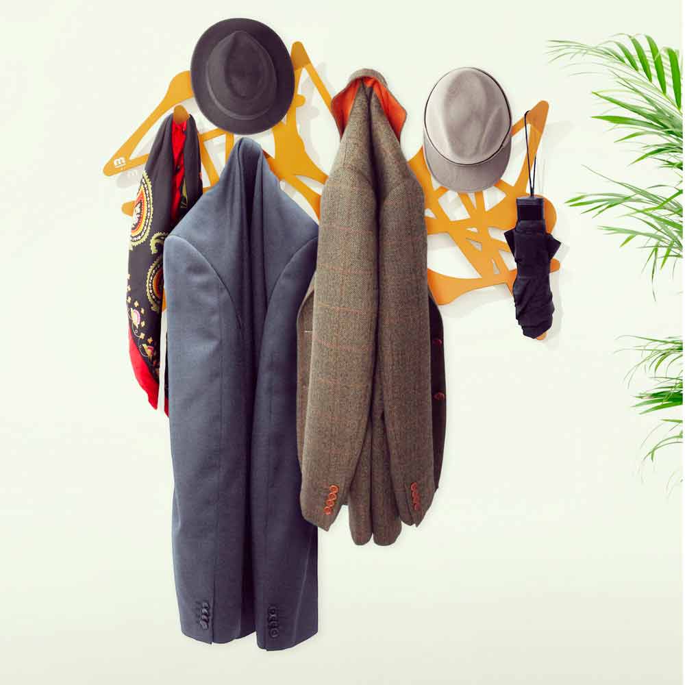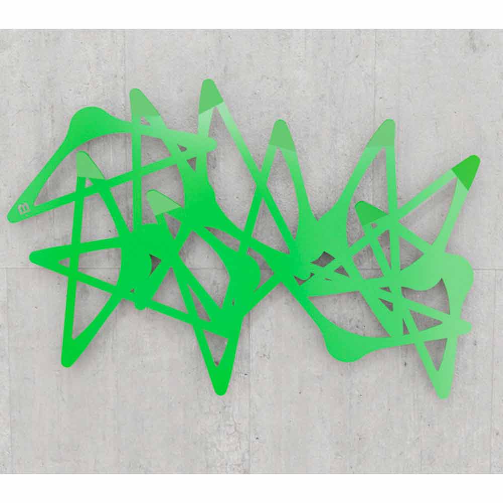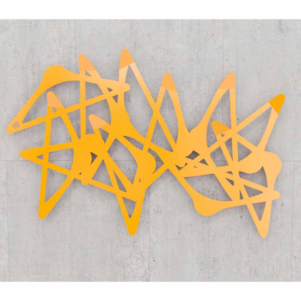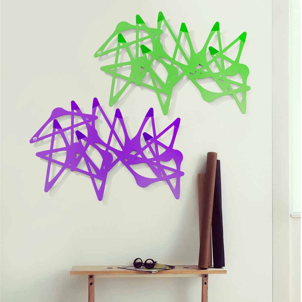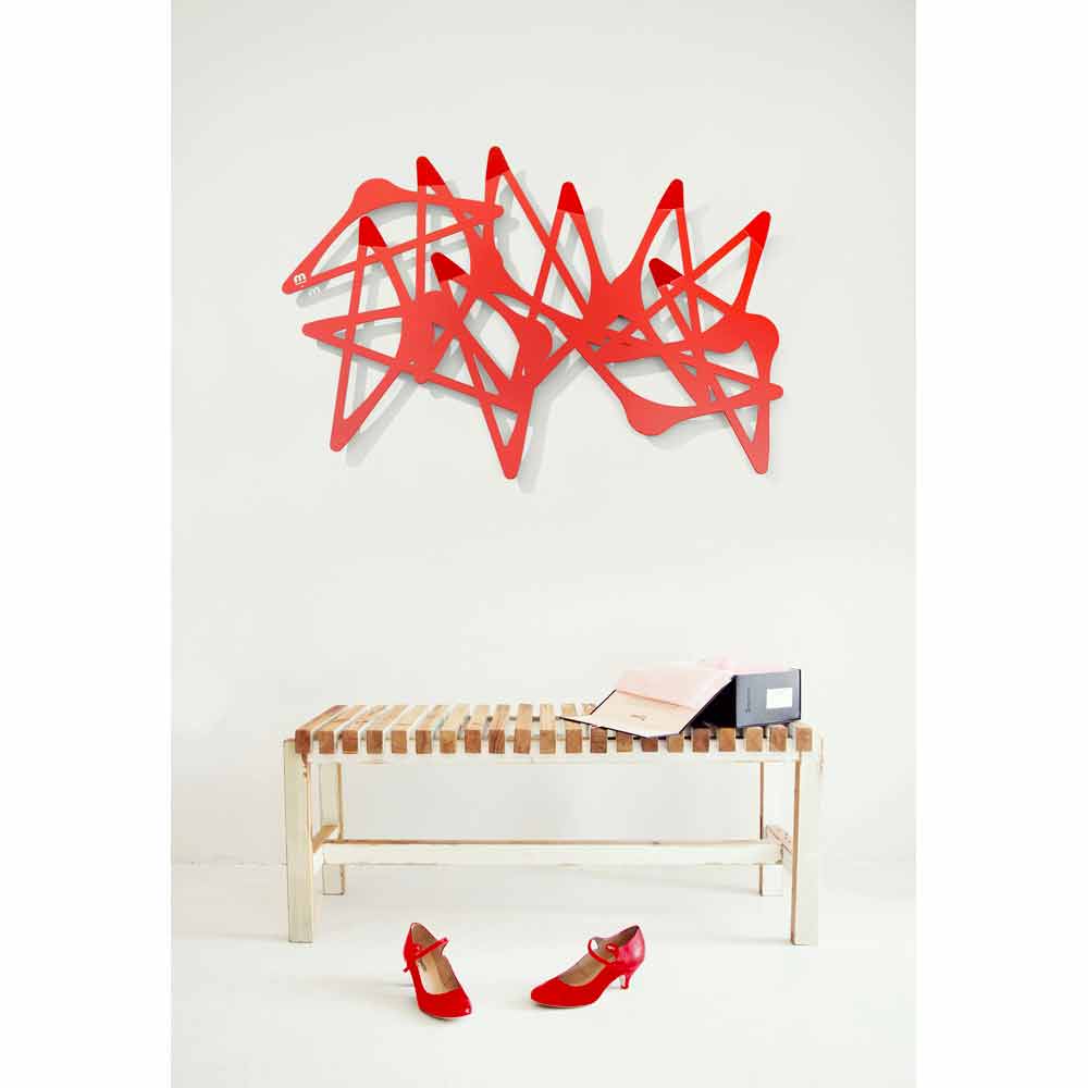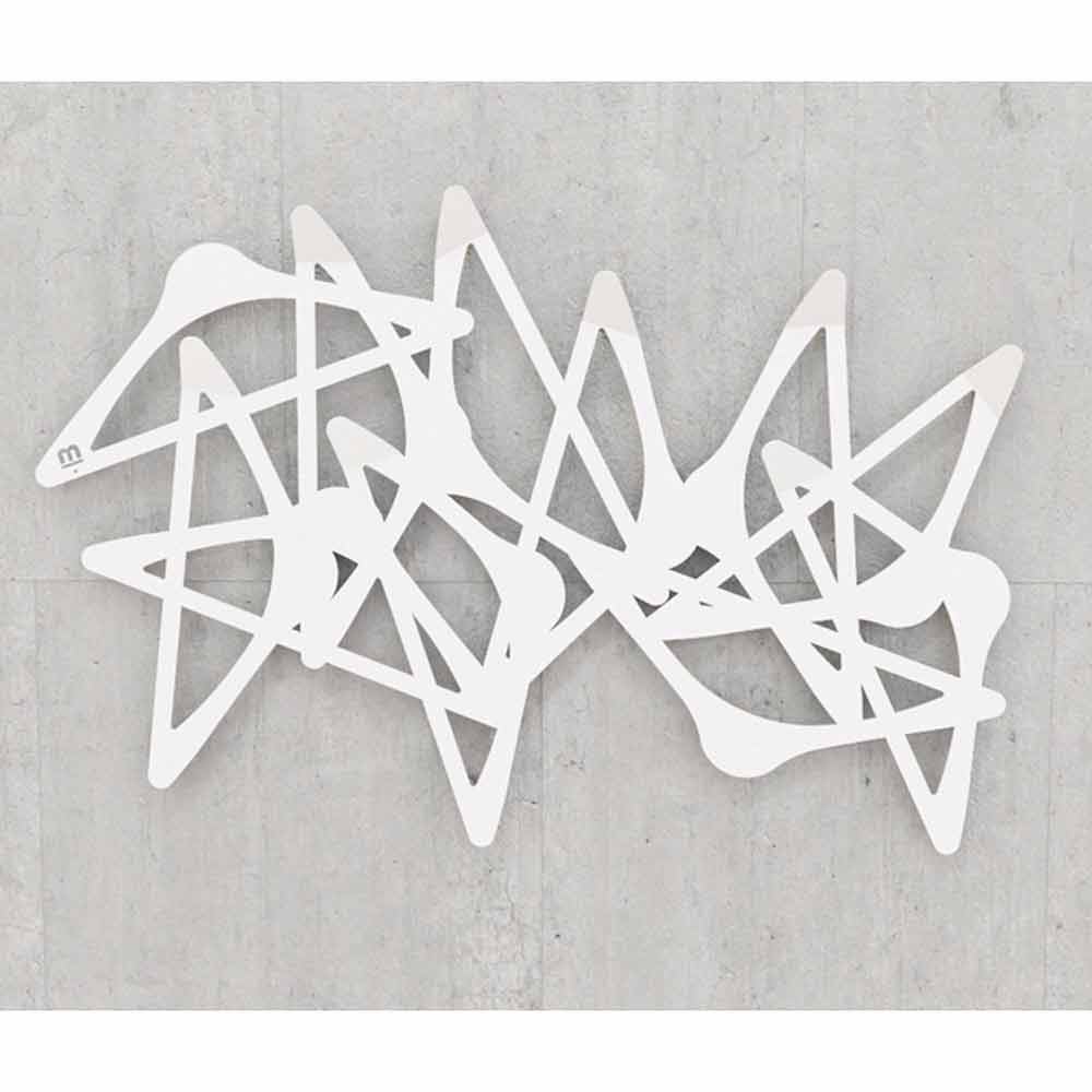 Blabla är en trevlig vägg hängare i metall laserskuren, med formen av en kaotisk och kladdigt stiliserad uppsättning galgar. Den finns i vitt, rött, svart, orange och grönt.