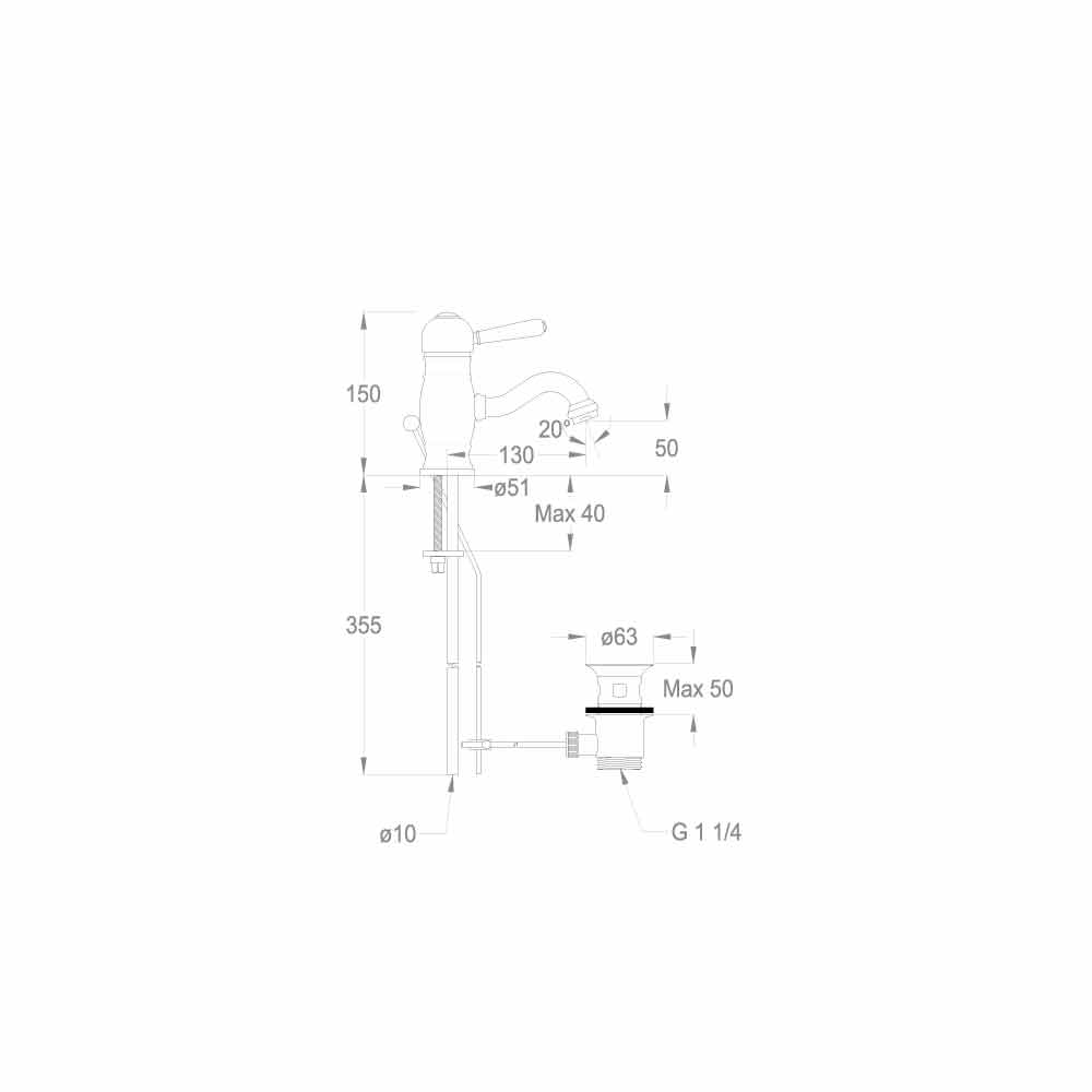bänkskivblandare 150 mm hög och med ett centrumavstånd på 130 mm, med avlopp och pop-up-avfall. Helt