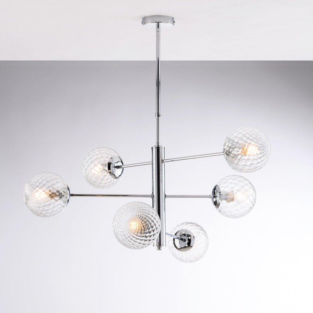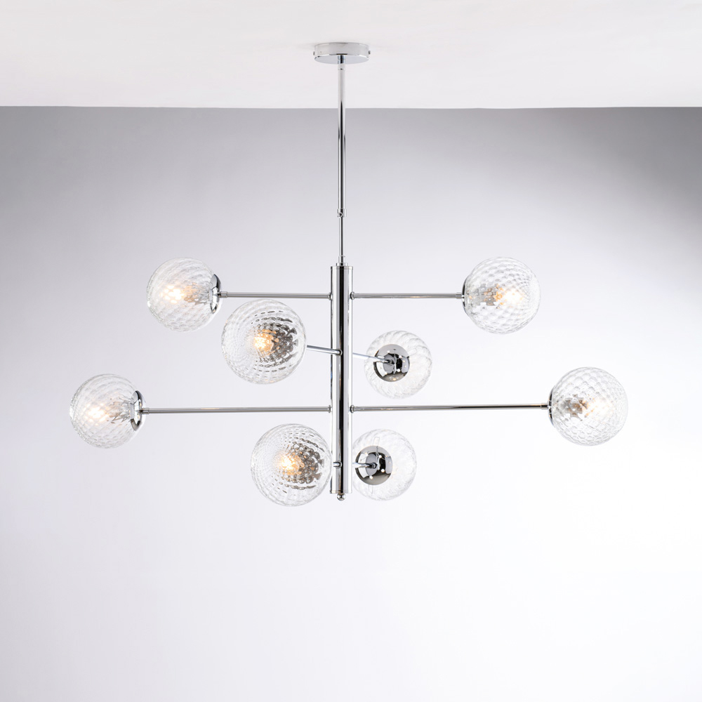 Denna pendellampa finns i polerad krom eller brons och passar naturligt in i moderna vardagsrum , matsalar , öppna utrymmen , designmiljöer och kontorsutrymmen . Kombinationen av metall och glas uttrycker den utmärkta italienska hantverket , med särskild uppmärksamhet på detaljer och proportioner.