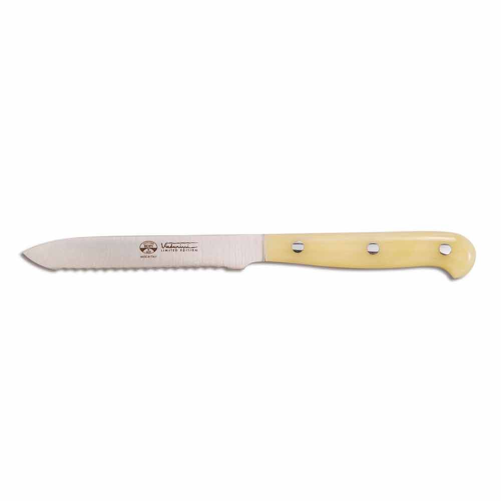 Tomatkniv : För att skära tomater kan du göra undantag från regeln att endast släta blad i köket används med hjälp av denna kniv som med tänderna hjälper till att gravera filmen som täcker varje tomat. Bladen erhålls genom laserskärning från ark av specialstål som möjliggör en