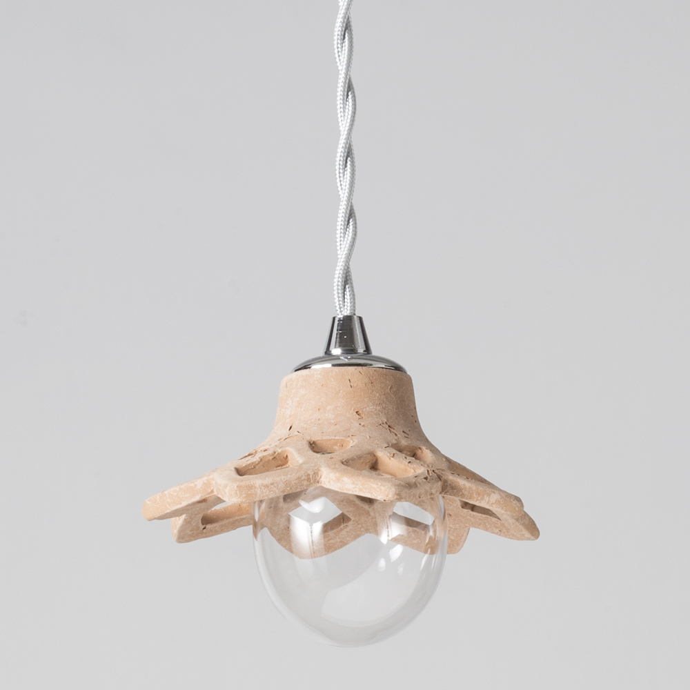 Serien Apuane terrakotta taklampor och vägglampor från Toscot föddes från önskan att belysa varje hörn av miljön med minimalt utrymme genom fantasifulla kombinationer av geometriska och blommiga former. Finns som enkelupphängning eller ansluten i ett system.