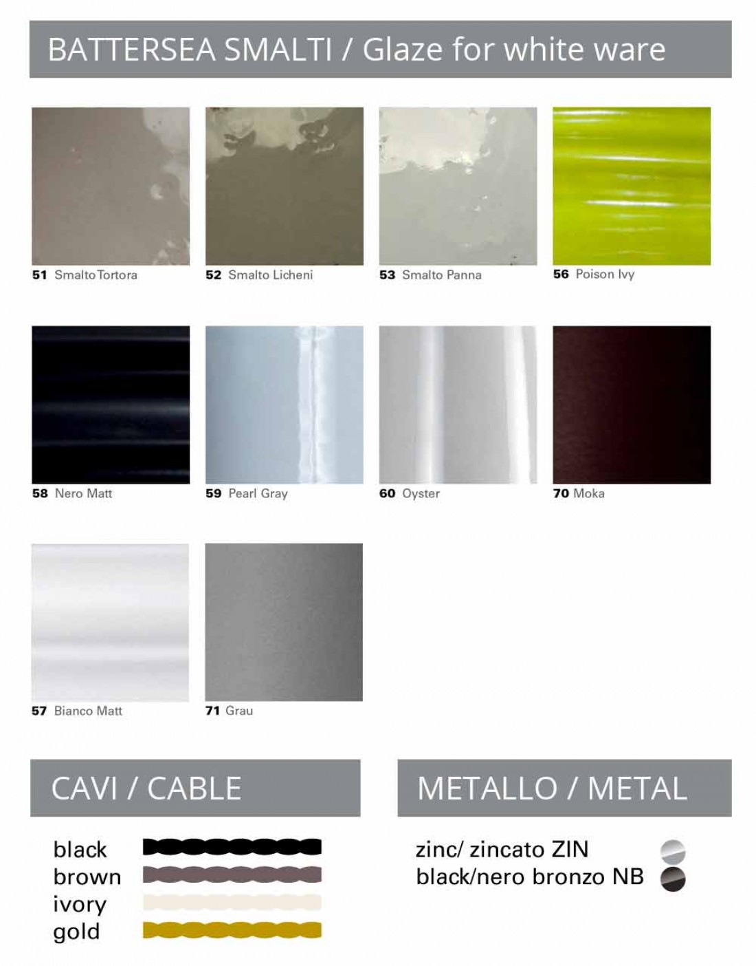 Battersea är en elegant och förfinad trådupphängning, handgjord i keramik enligt den sanna toskanska traditionen. Den ursprungliga designen av denna "klockformade" upphängning och dess linjer är aktuella och moderna, lämpliga för olika miljöer. Designlampa, allt från retro till modern, komplett med en central fjäder som ger upphängningen den unika och originella egenskapen. Tillverkad av högkvalitativa material, Battersea finns i olika finish och garanterar en direkt ljusstråle.