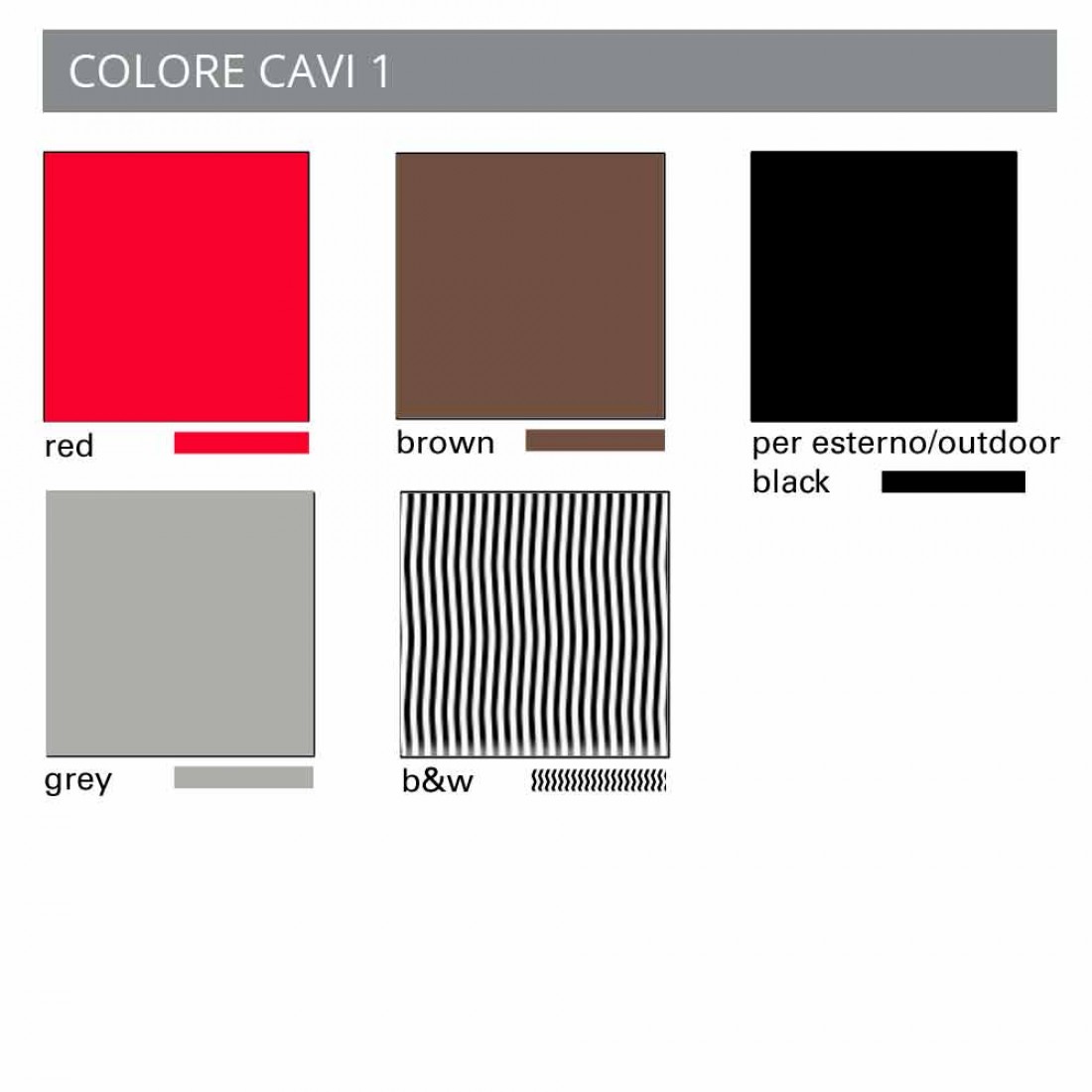 Följande färger kan också väljas för kabeln: röd, brun, grå eller svart och vit.