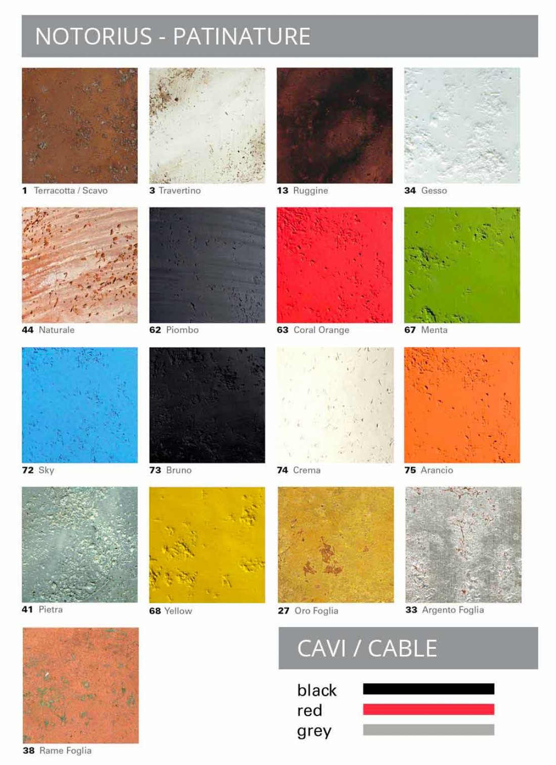 Observera: Lampan finns i olika kromatiska varianter, både för den yttre finishen, både för den invändiga och för skuggan av elkabeln. Se färgkartan och ange önskade färgkoder i lämplig ruta.