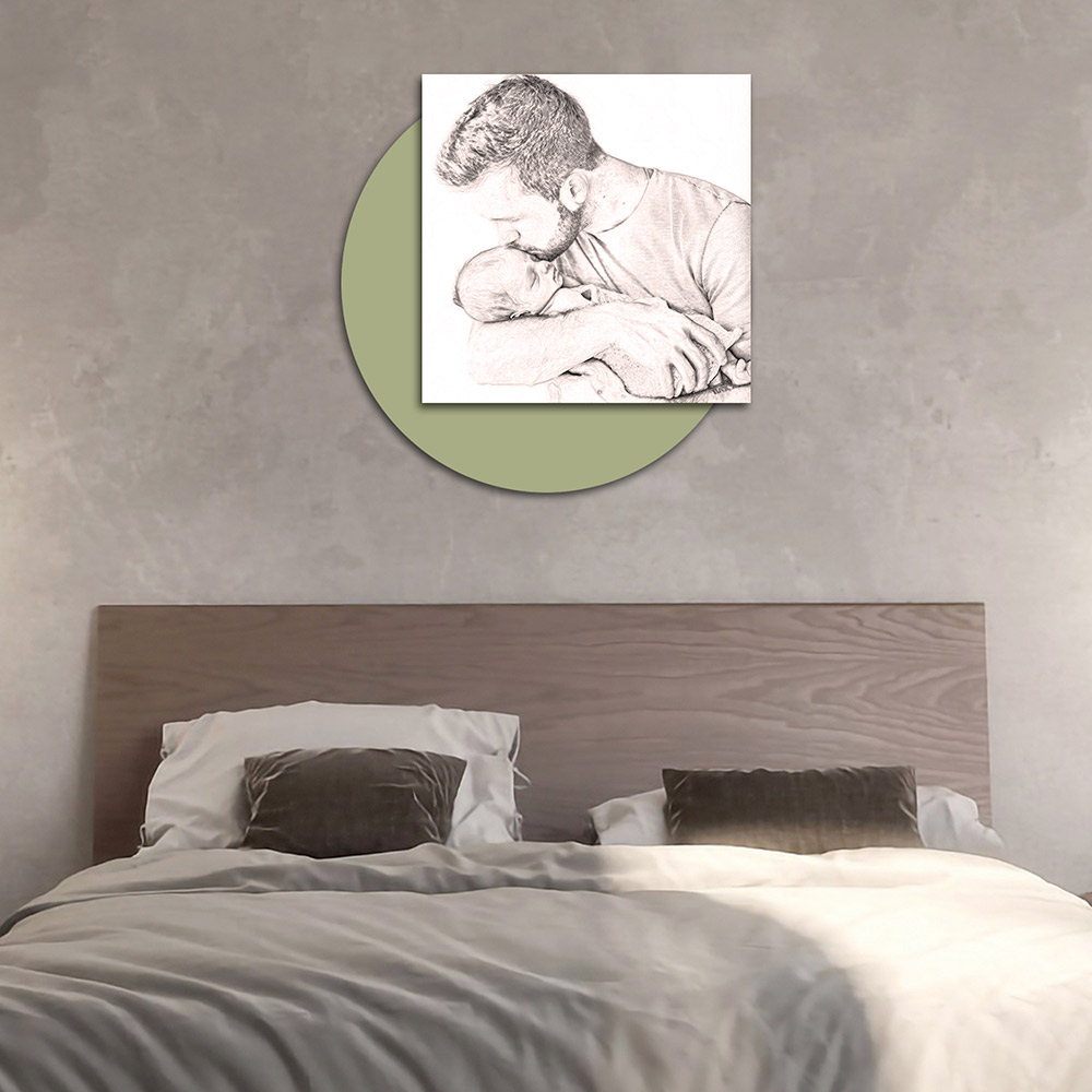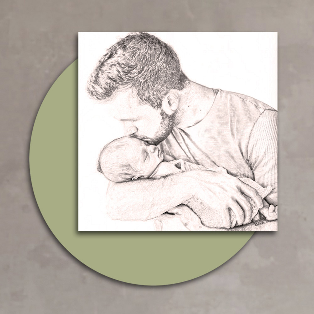 kyss från fadern på sonens panna är unik och når rakt in i hjärtat av dem som tittar på den. Ytbehandlingarna, träet som valts för produktionen och trycktekniken framhäver all