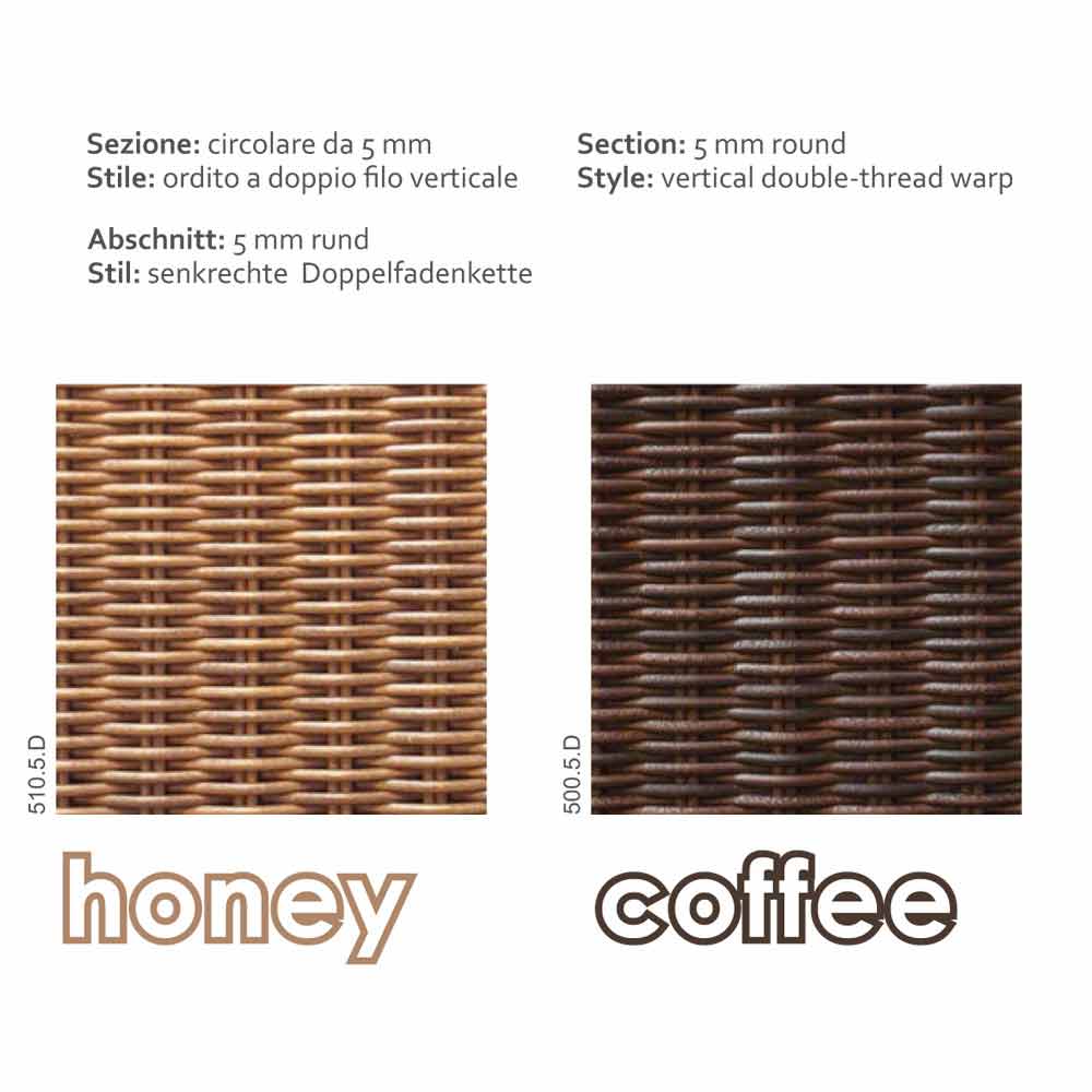 Jonny utgörs av en aluminiumram, med polyetenstruktur för att vara 5 mm rund, flätad helt för hand, vilket finns i två olika nyanser: kaffe och honung.