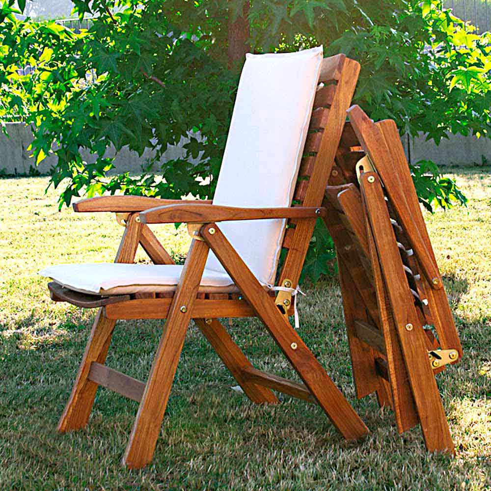 Utomhusfåtölj i naturlig teak och kuddar - Circe