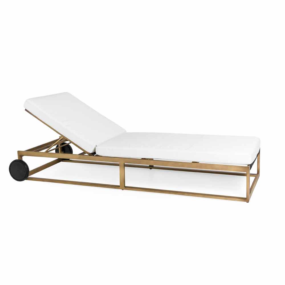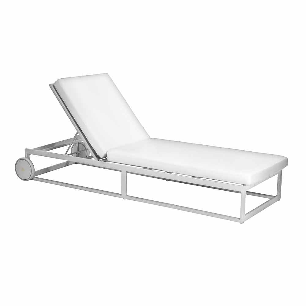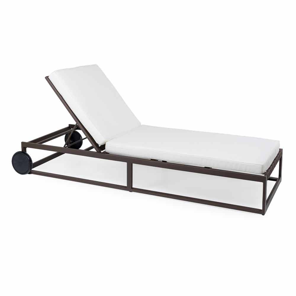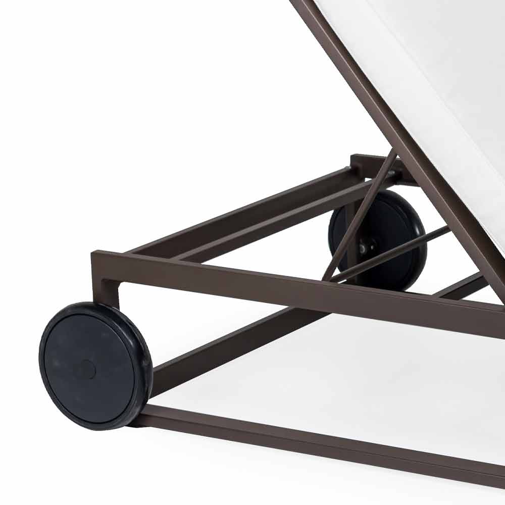Solsäng med aluminiumhjul i 3 ytor och kuddar, lyxig design.
