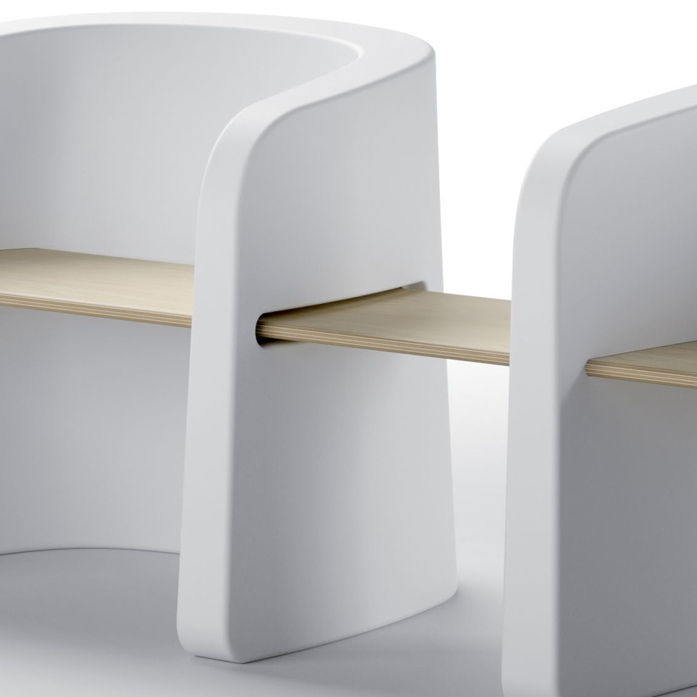 björkträ som också ger en praktisk stödyta mellan de två sätena. En idé om möbler