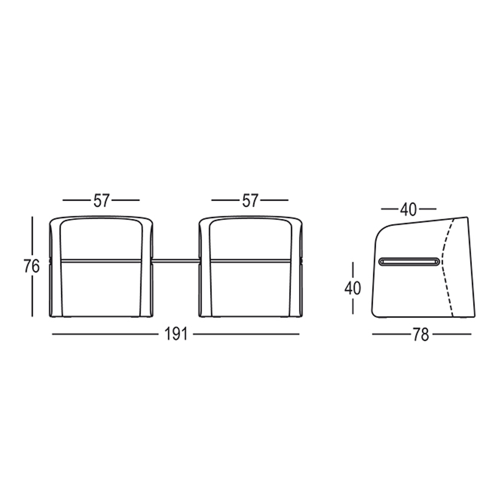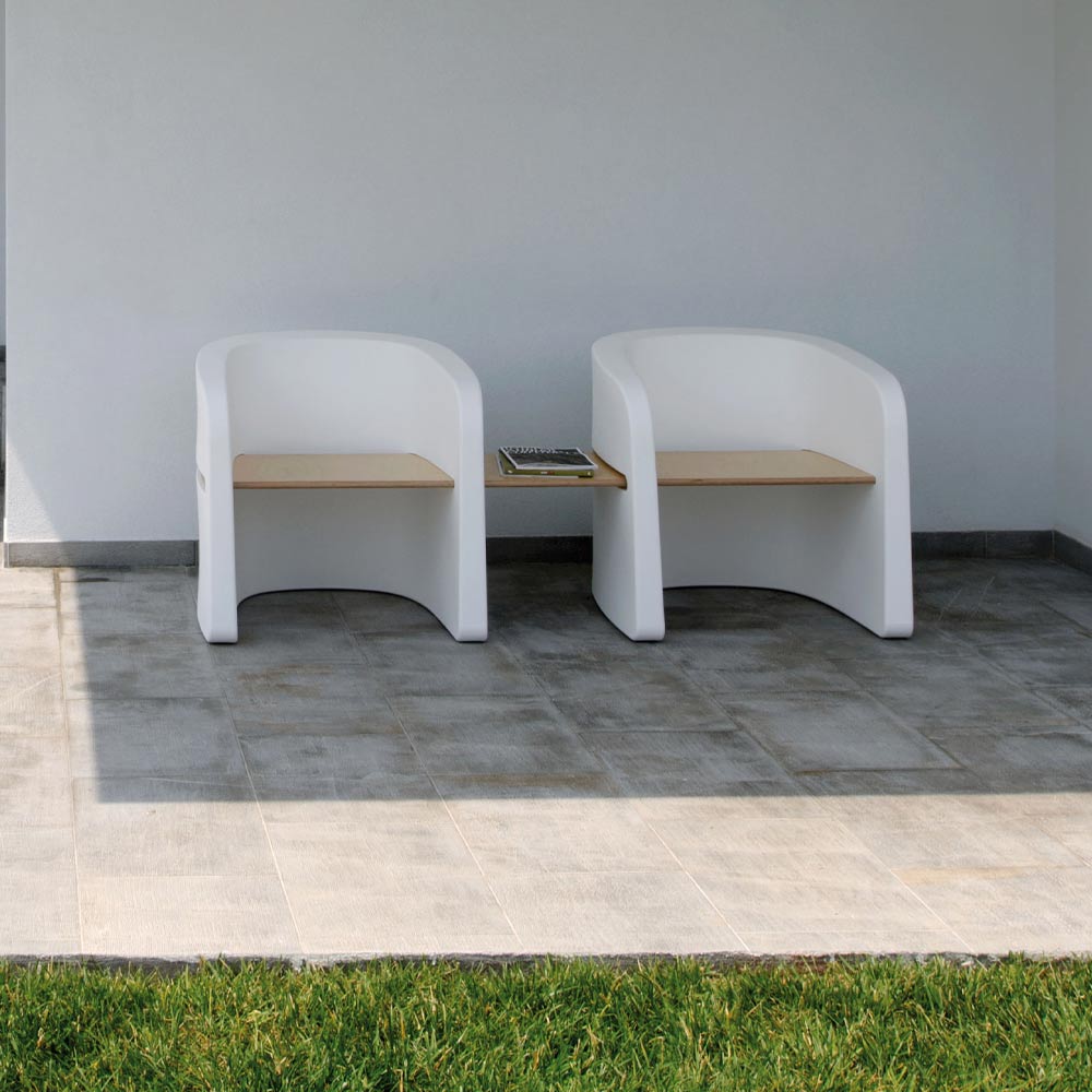 Utomhusbänk tillverkad i Italien bestående av två fåtöljer i
